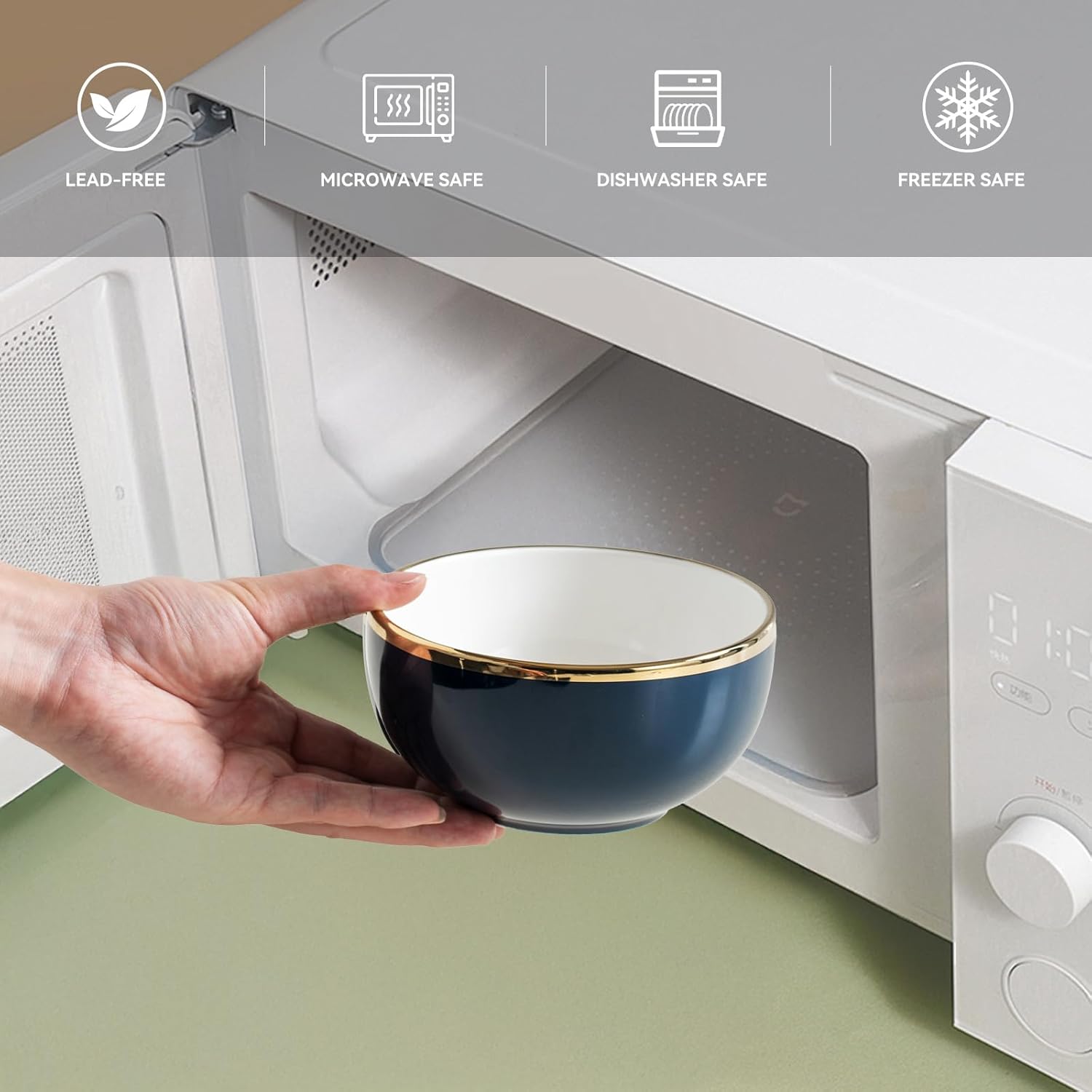 • 【HIGH QUALITY FOR YOU】Our dark blue Plates and bowls set are made of high porcelain material, and the glaze is all-natural. After 2340℉ high temperature firing, the plates are lead-free, cadmium free and non-toxic.Since our glaze is all-natural. The color may be a tad different from what you see in the images,but very item is beautiful.Our glaze is also extra strong to prevent scratches from your knives and forks.