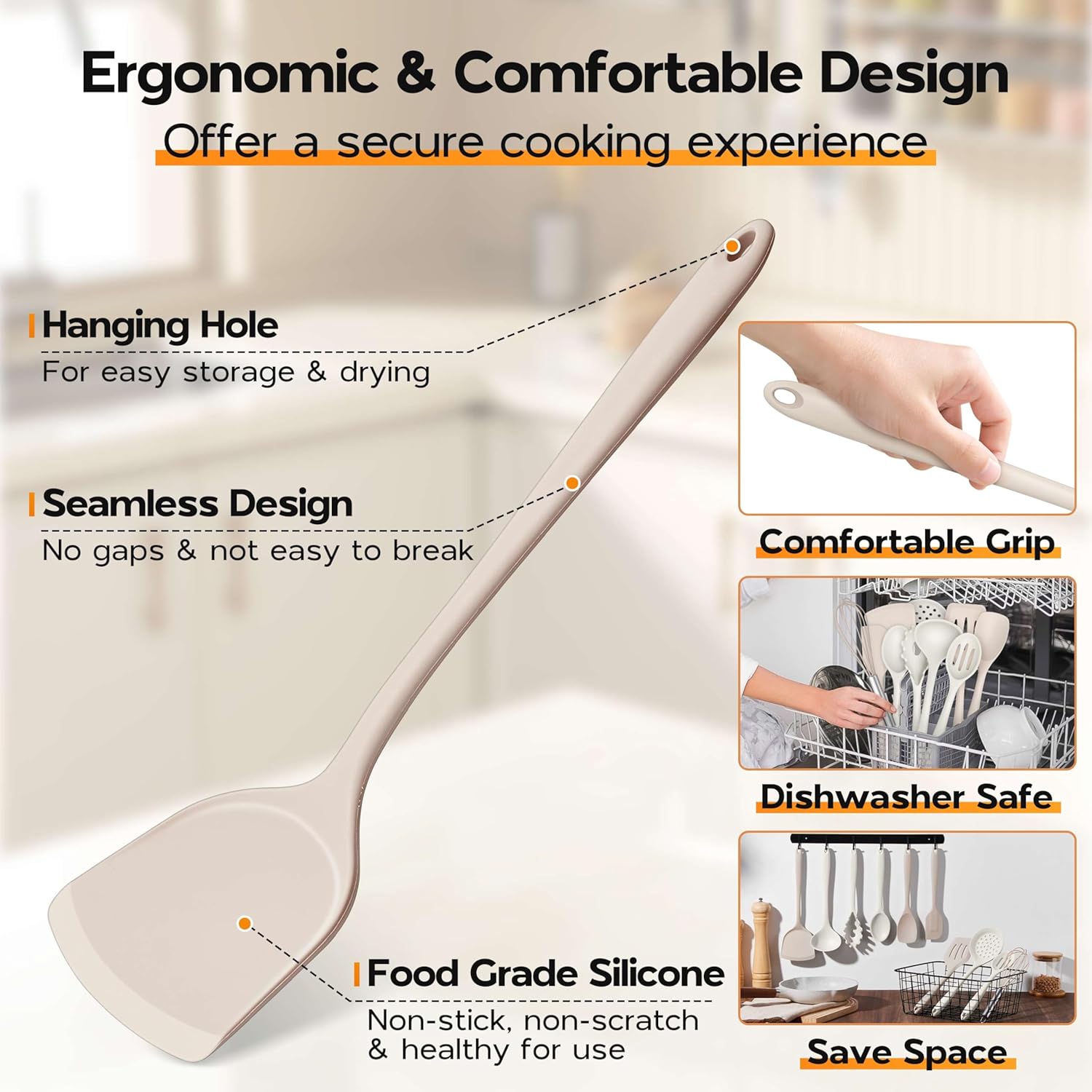 • Non-Stick Cookware Friendly: soft silicone heads protect nonstick surfaces, say goodbye to scratched pans, reinforced cores offer stiffness to flip heavy foods, perfect balance of flexibility and precision