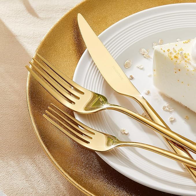 KINGSTONE Silverware Set, 60-Piece Flatware Set Cutlery Set Premium 18/10 Stainless Steel, Tableware Include Forks Knives Spoons for Home Kitchen Restaurant Wedding, Dishwasher Safe,Gold