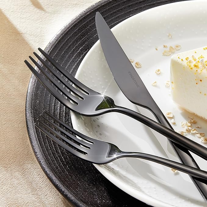 KINGSTONE Silverware Set, 40-Piece Flatware Set Cutlery Set Premium 18/10 Stainless Steel, Tableware Include Forks Knives Spoons for Home Kitchen Restaurant Wedding, Dishwasher Safe,Black