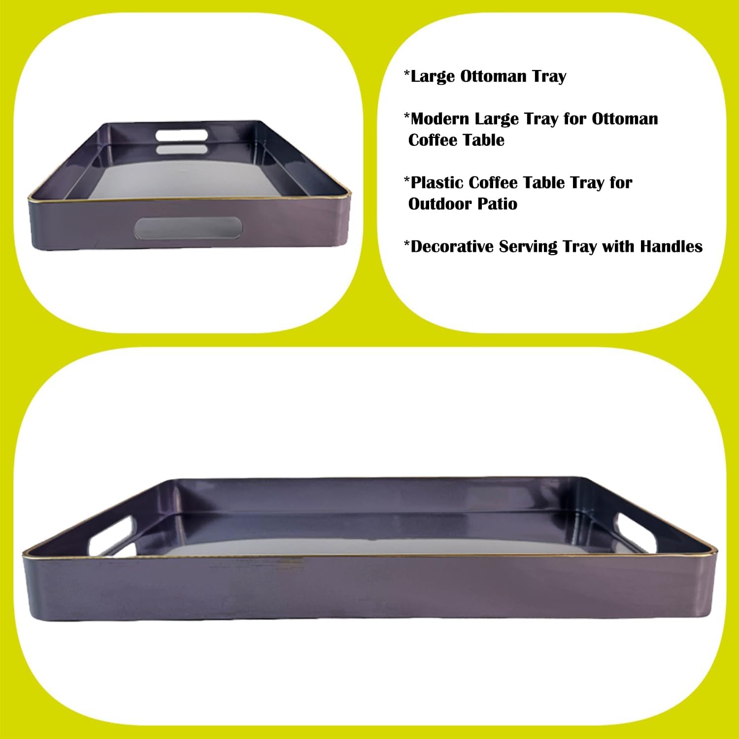 • Versatile Multi-Use Tray: This large gery tray perfect as a coffee table organizer, bathroom caddy, ottoman tray, or decorative display—ideal for serving guests, storing remotes, or arranging perfumes and candles.
