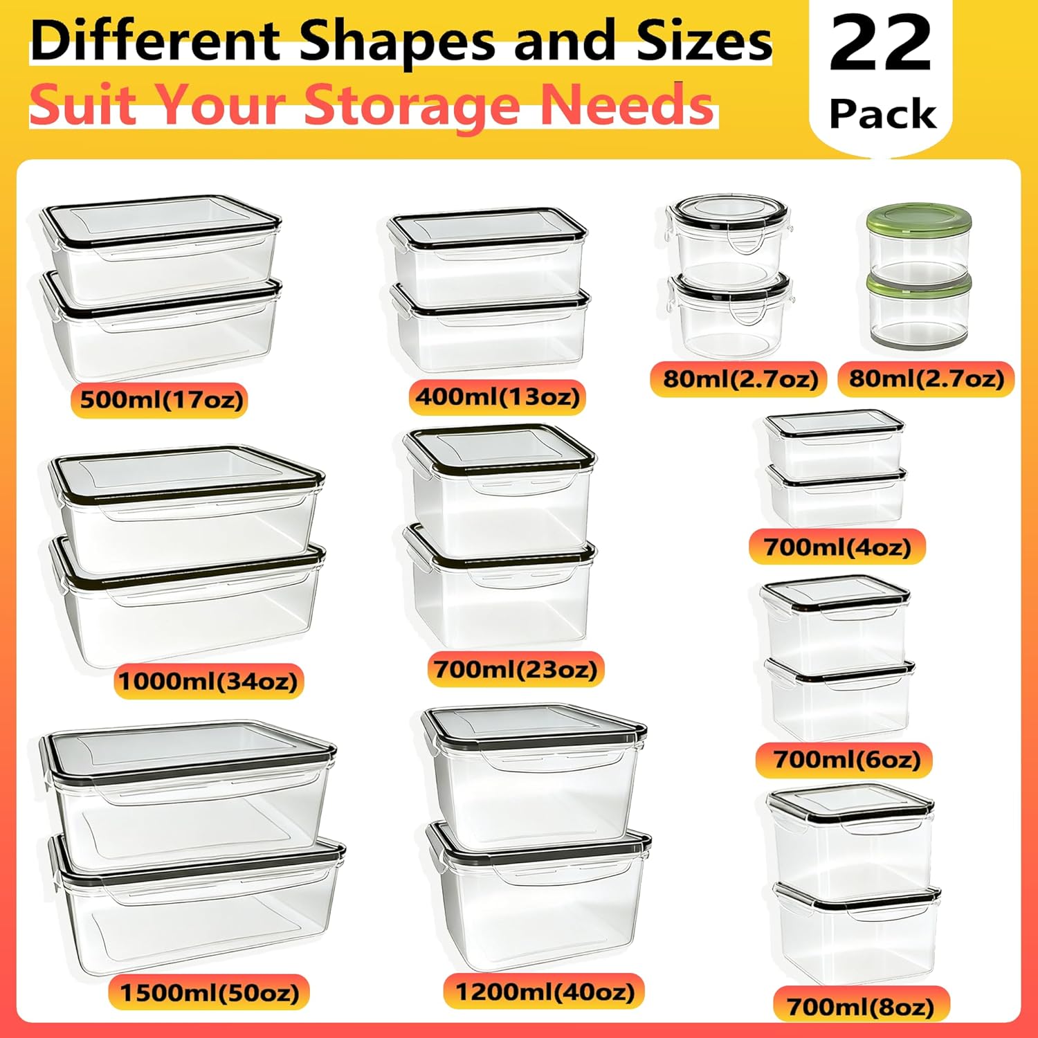 44 PCS Plastic Food Storage Containers with Lids Airtight, BPA-Free Leakproof Meal Prep Containers Reusable,Microwave & Dishwasher & Freezer Safe,Includes Labels & Pen