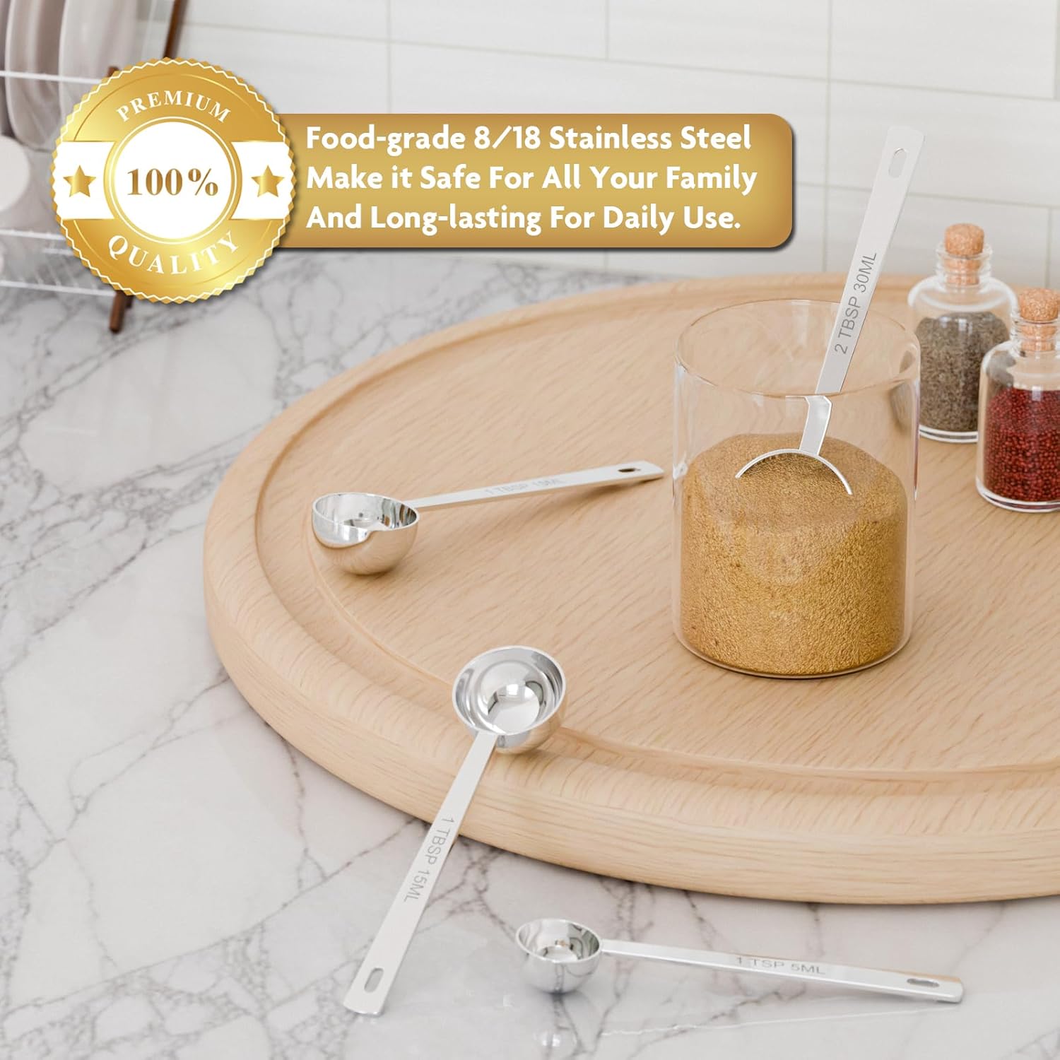 • Premium – Crafted from high-quality food-grade 8/18 stainless steel, the measuring spoon ensures safety and reliability in every measurement. Resistant to rust, corrosion, and stains, it’s a healthy choice for your kitchen that stands the test of time.​