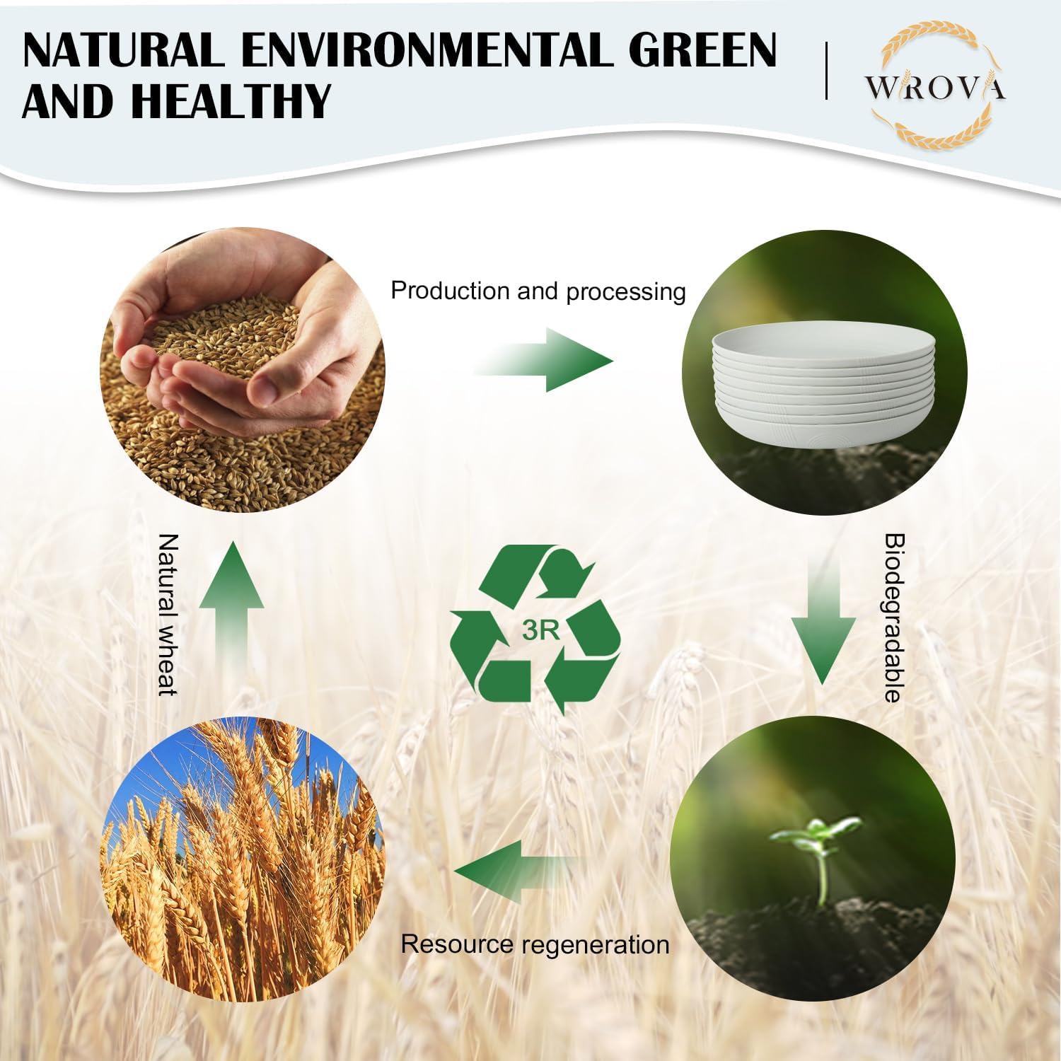• 【𝐕𝐞𝐫𝐬𝐚𝐭𝐢𝐥𝐞】- Wrova wheat straw plates are lightweight, suitable for every meal, serving pasta, sandwich, bread and butter, dessert, salad, appetizer, etc. Whether indoor or out door, our plates will show their excellent quality.