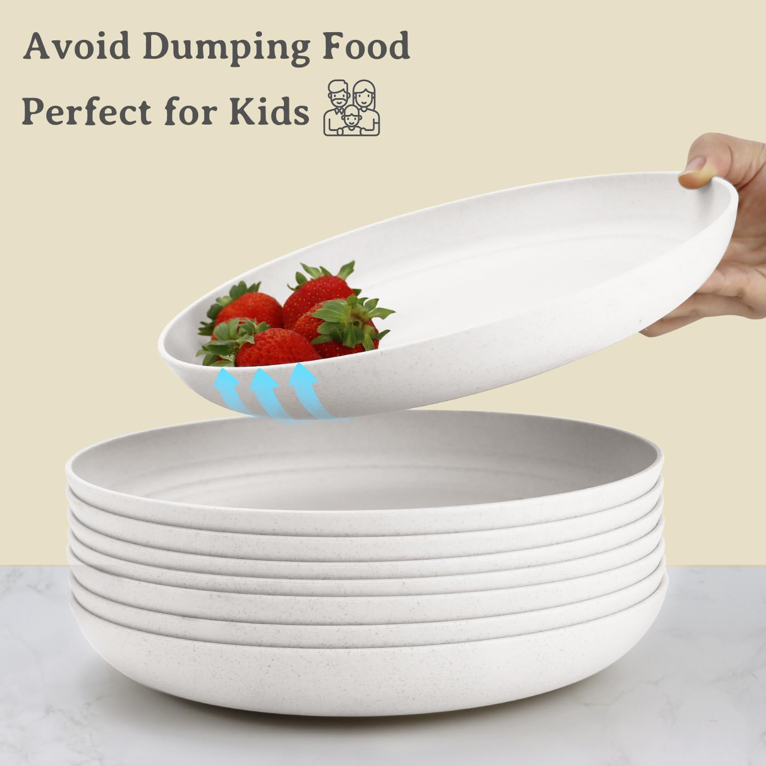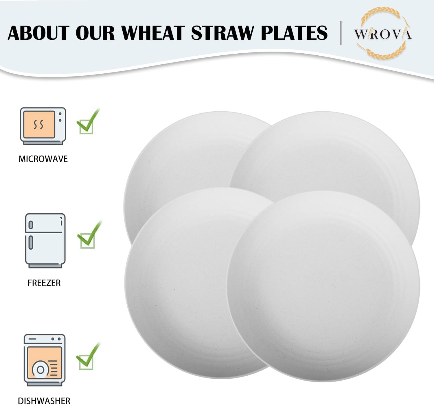 Wrova Wheat Straw Plates - 10 Inch Unbreakable Dinner Plates Set of 8 - Dishwasher & Microwave Safe Plastic Plates Reusable for kitchen and camping (White)