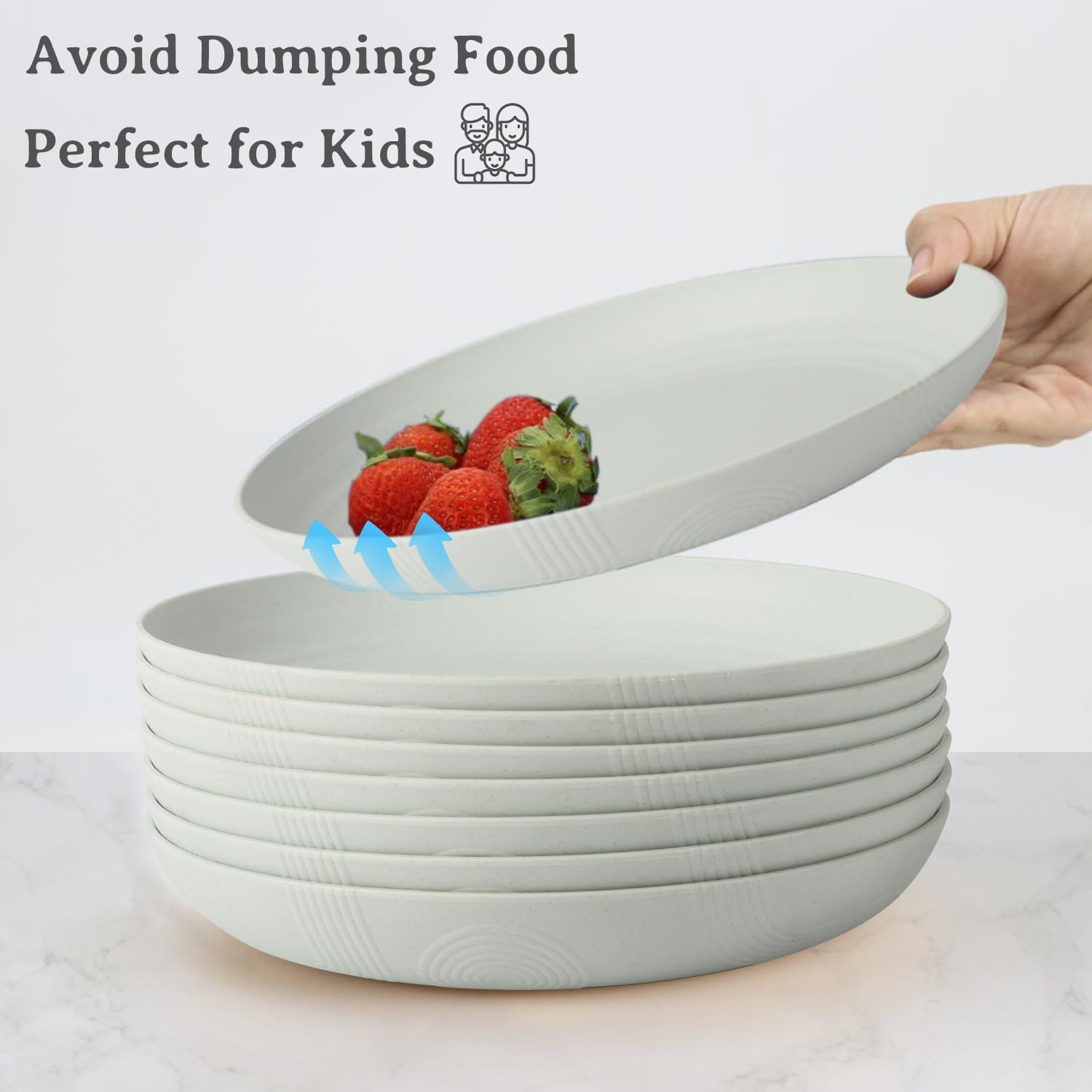 Wrova Wheat Straw Plates - 10 Inch Unbreakable Dinner Plates Set of 8 - Dishwasher & Microwave Safe Plastic Plates Reusable for Kitchen and Camping (Light Grey)