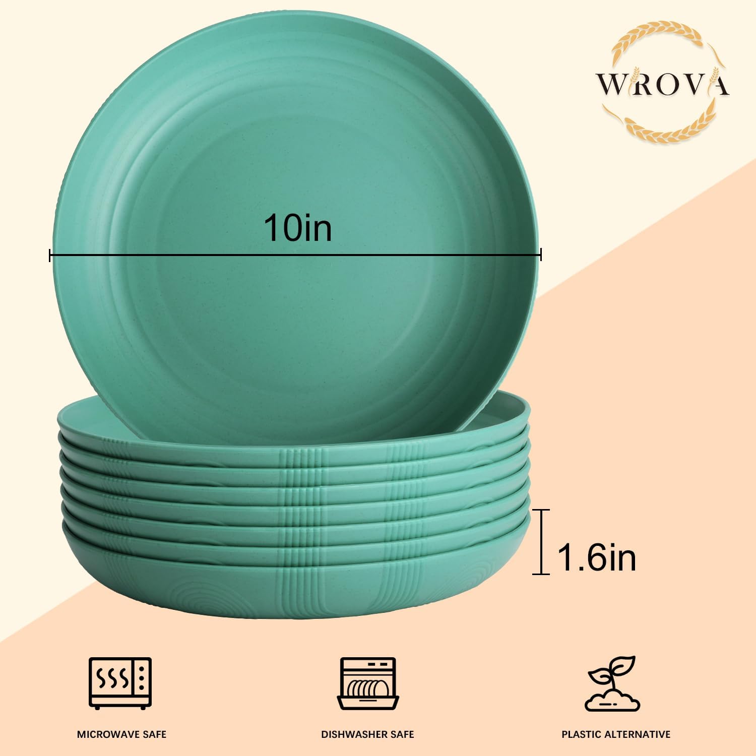 Wrova Wheat Straw Plates - 10 Inch Unbreakable Dinner Plates Set of 8 - Dishwasher & Microwave Safe Plastic Plates Reusable for Indoors and Outdoors (Green)