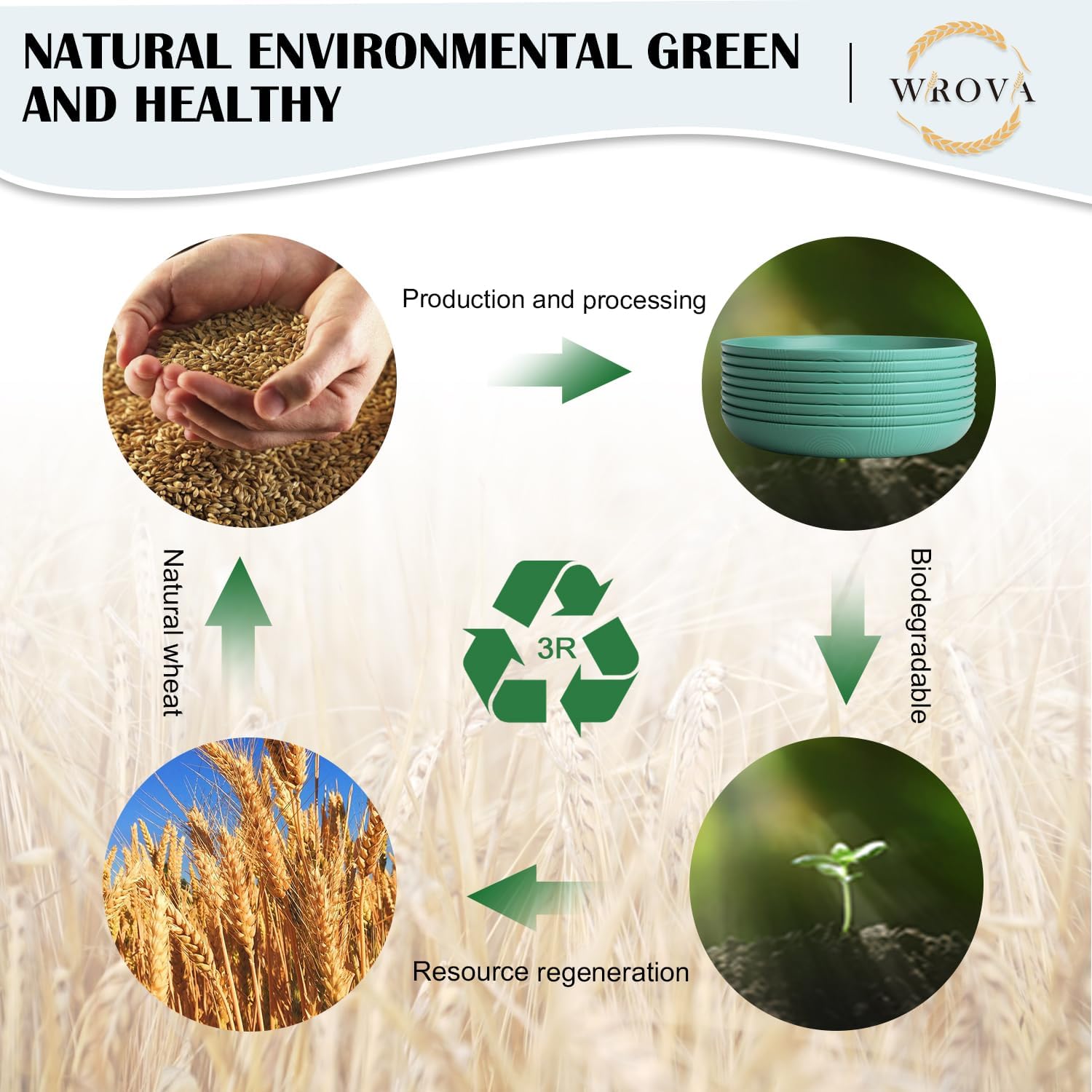 • 【𝐔𝐧𝐛𝐫𝐞𝐚𝐤𝐚𝐛𝐥𝐞 & 𝐋𝐢𝐠𝐡𝐭𝐰𝐞𝐢𝐠𝐡𝐭】- Wrova wheat straw plates are unbreakable and durable. No matter how many times dropped, it won’t break into pieces. Kids will use these plate without worried. Lightweight and Stack-able are other advantages, really suitable for kitchen and camping.