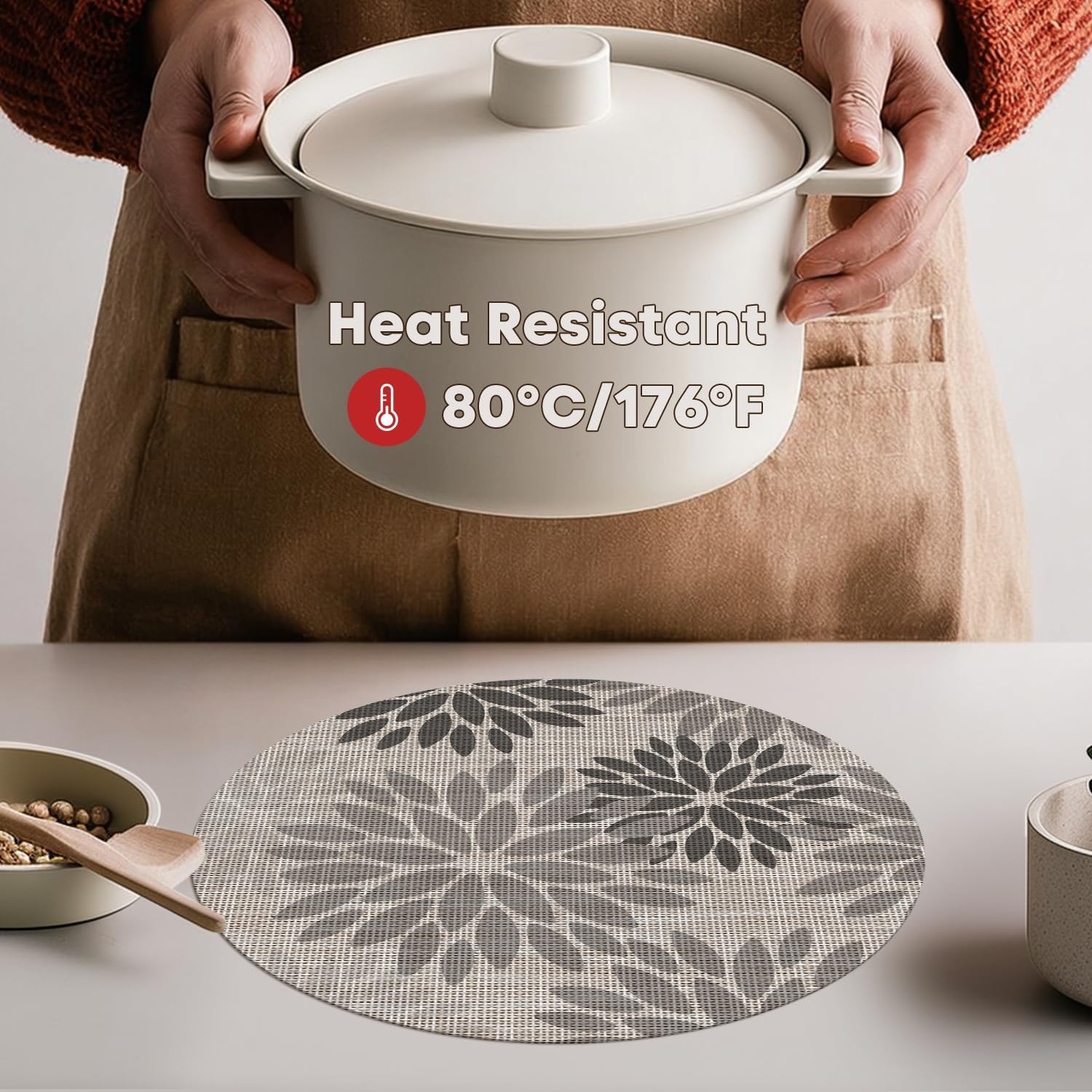 • Protect Your Table:The wipeable placemat Heat-resistant up to 176°F (80°C), perfect to protect your dining table from food stains and burns.