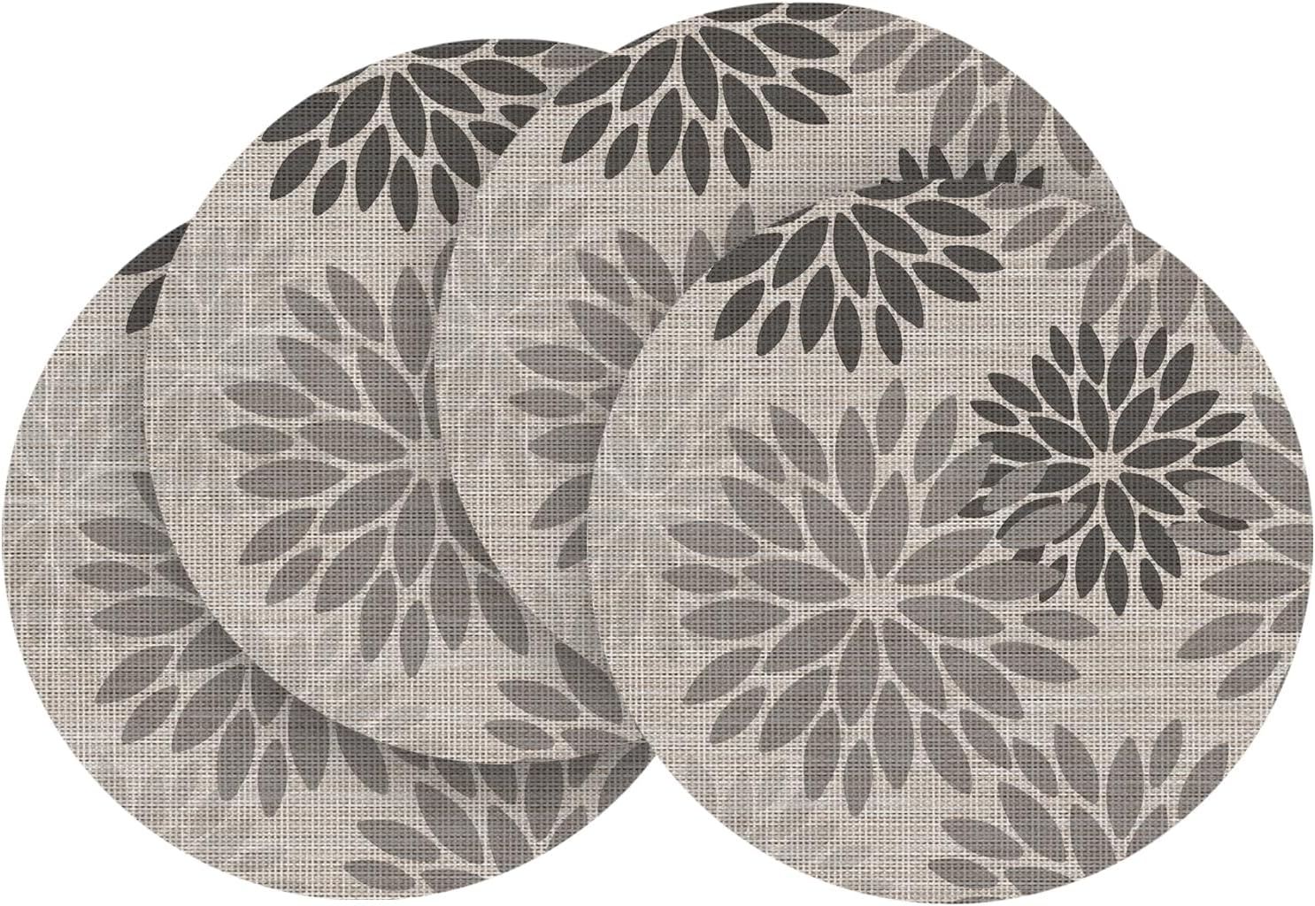 Artoid Mode Gray Dahlia Plastic Round Placemats Set of 4, 14 Inch Seasonal Wipeable Woven Vinyl Table Mats for Farmhouse Party Kitchen Dining Decor
