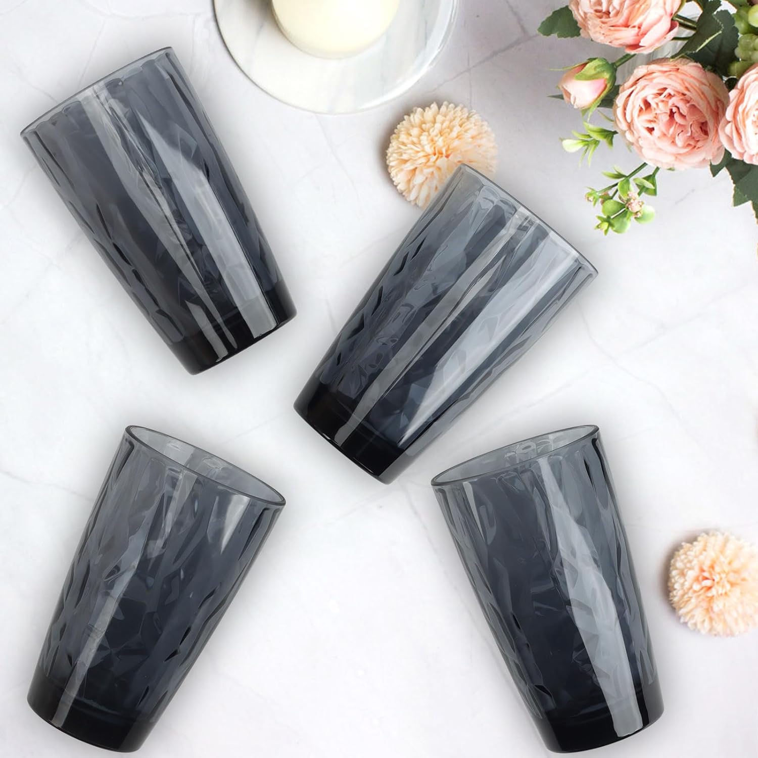Topsky 16oz Plastic Tumblers Drinking Glasses Set of 4,Gray Acrylic Drinking Cups Wine Glasses Beverage Cups for Daily Use, Poolside, Outdoor&Indoor - Stackable,Dishwasher Safe,Easy to Clean