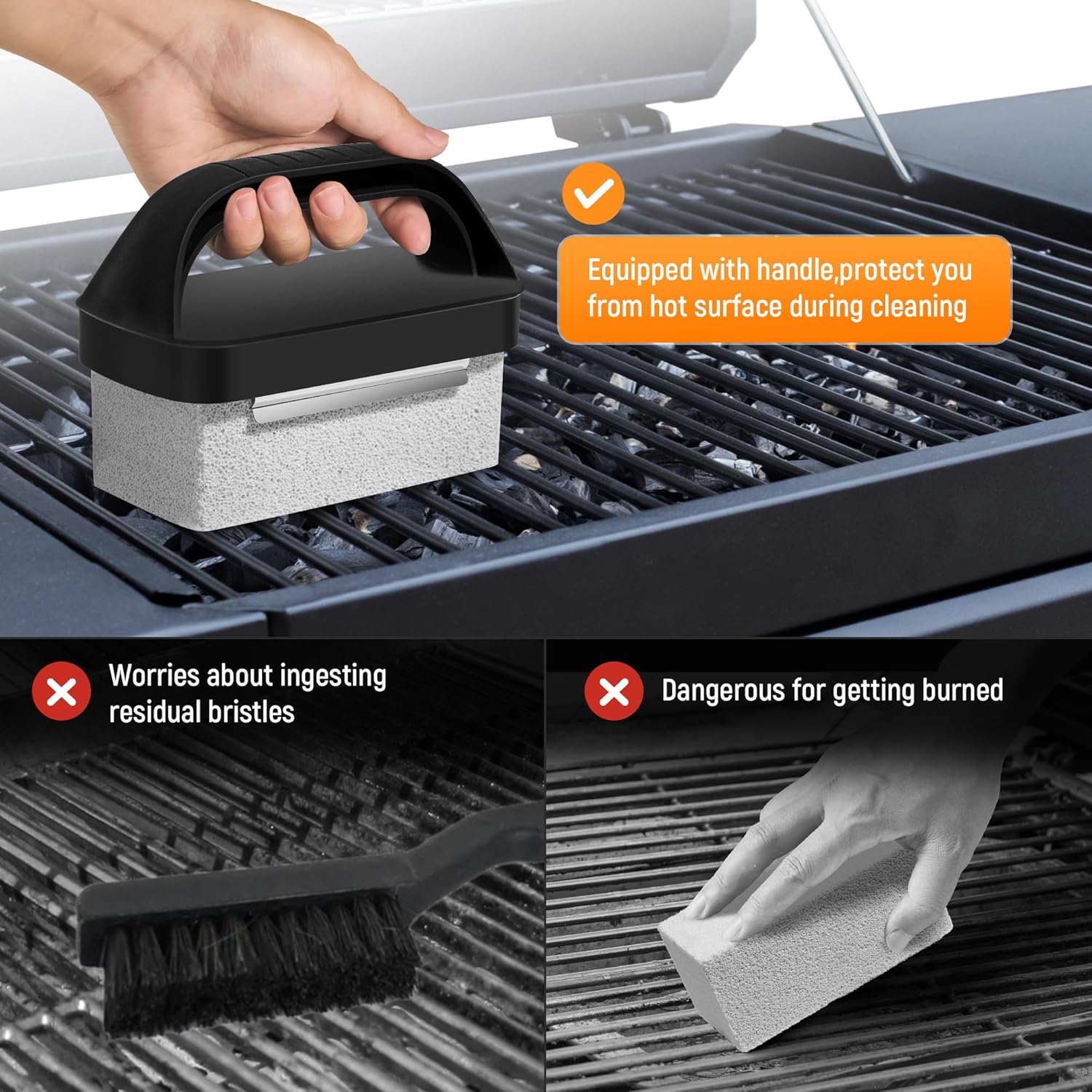 • 【Heavy Duty Grill Cleaner Kit】:This 5-in-1 grill/griddle cleaning kit includes 3 heavy-duty grill bricks, 1 ergonomic handle, and 1 mini grill scraper, designed for grills, stovetops, ovens, baking trays, and even range hoods. Perfect for BBQ lovers, home chefs, and outdoor cooking enthusiasts