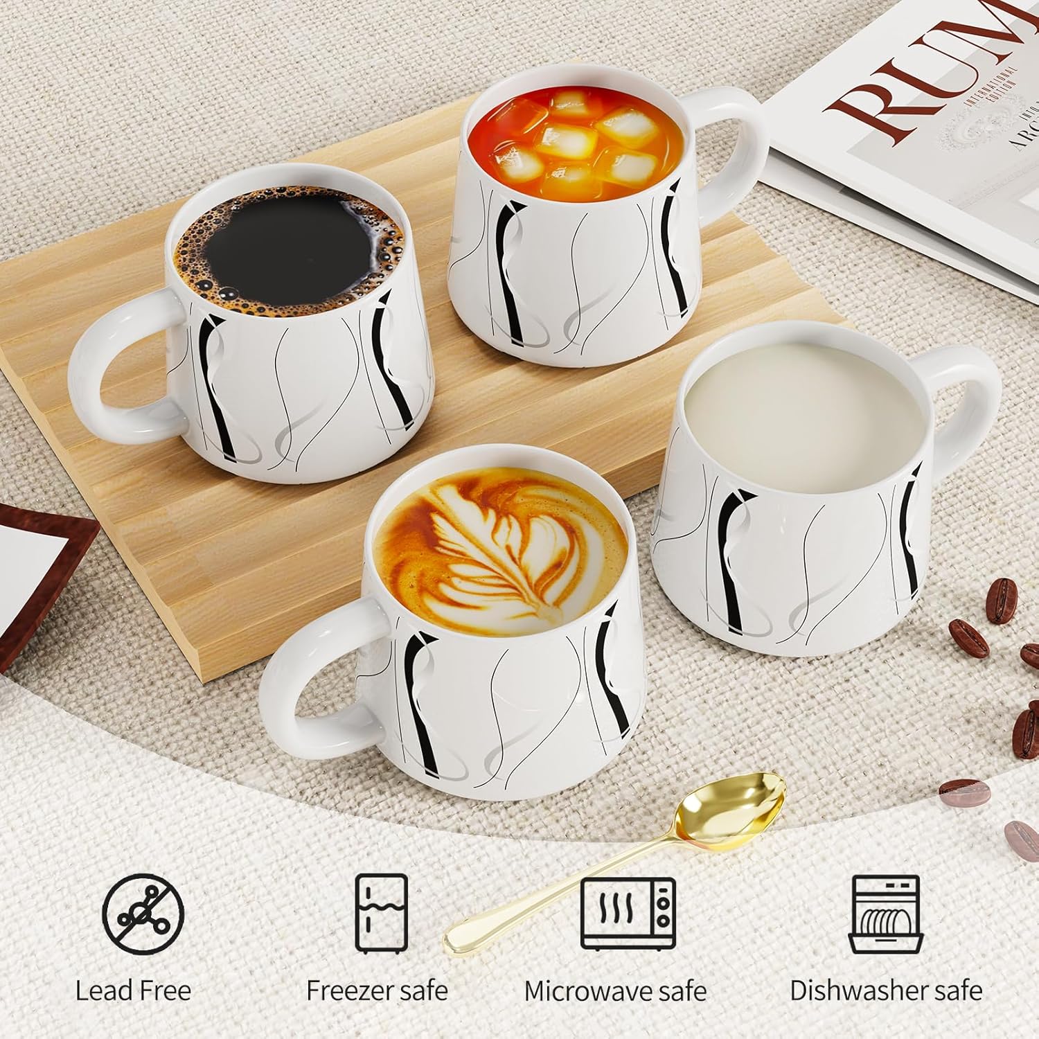 12 oz Coffee Mugs Set of 4, Modern Stackable Coffee Cups Set for Latte, Hot Tea, Cappuccino, Ceramic Coffee Mug Tea Cup, Dishwasher & Microwave Safe, Housewarming Wedding Present (White)