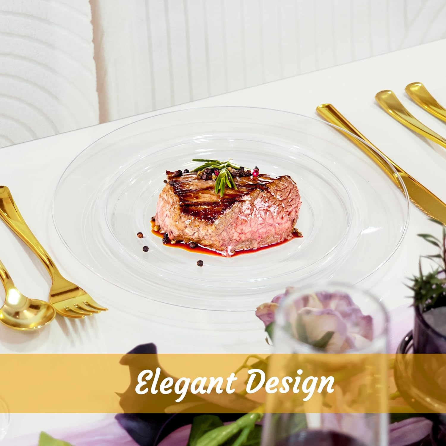 • EASY TO CLEAN: Our vision is to create a convenient and exquisite party for the owners. These clear party plates simplify the cleaning after the event, allowing for more time to relax with guests and family. Their high quality ensures these clear plates for party are sturdy and durable, and can be reused after cleaning to maximize their value.