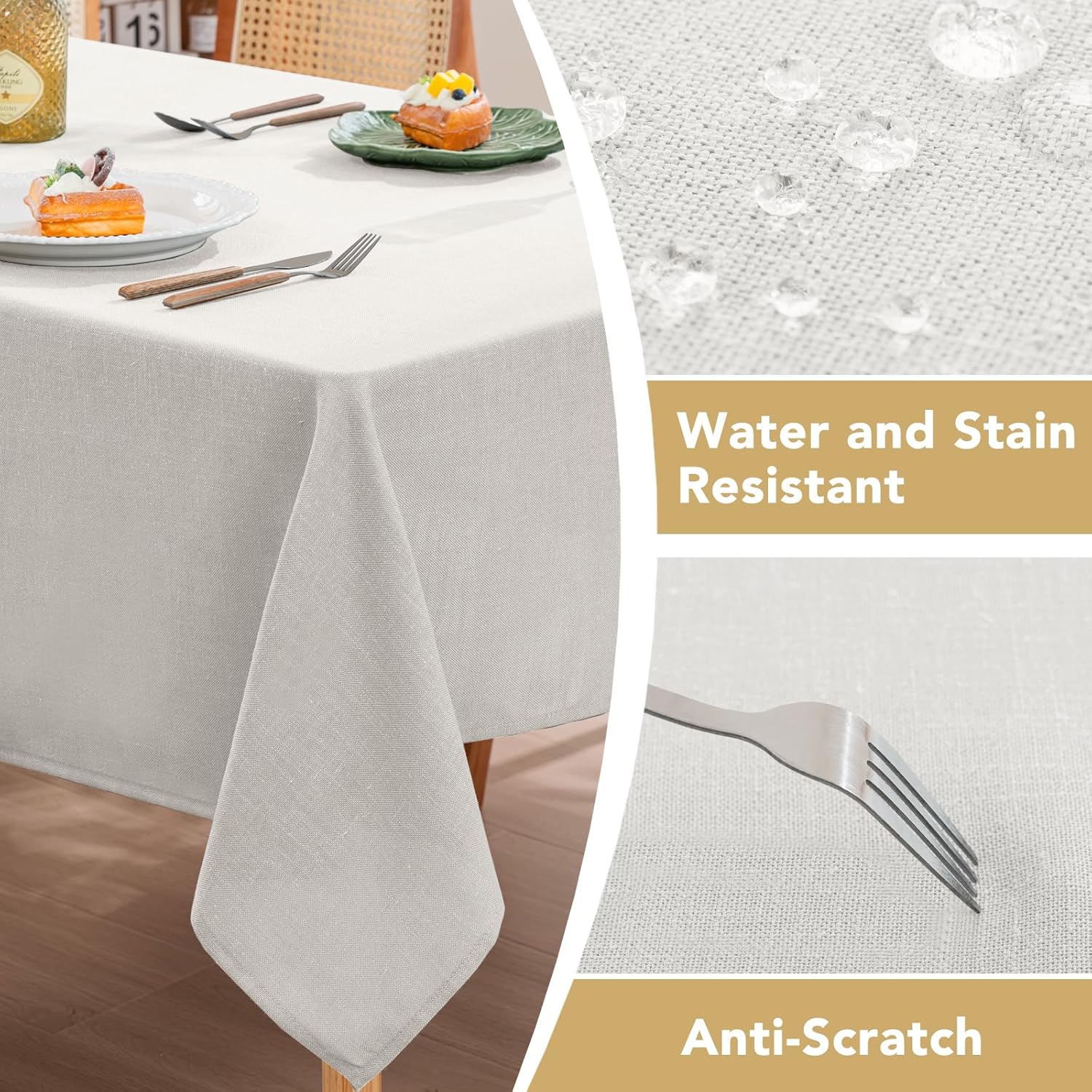 H.VERSAILTEX Linen Table Cloths Rectangle 60 x 84 Inch Premium Tablecloth Spill-Proof Waterproof Table Cover for Dining Buffet Feature Extra Soft and Thick Fabric Wrinkle Free, White
