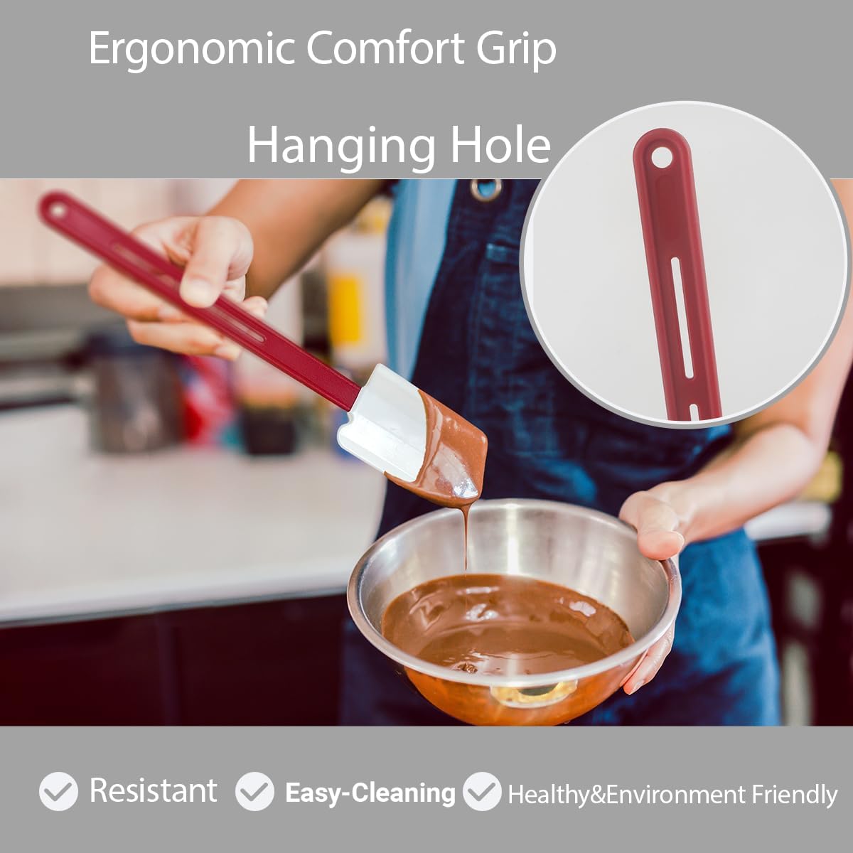 • 【NICE IN MATERIAL】 Made with premium food-grade silicone blade and nylon handle, This silicone spatulas are resistant to temperatures up to 500 degrees Fahrenheit, not going to crack while used in high heat. Srong, durable, not prone to stain, fade or discolor, they healthy, odorless, food safe, and reliable to serve for years with no need for special care. Its non-removable handle enhances durability, and it’s dishwasher-safe for easy cleaning.