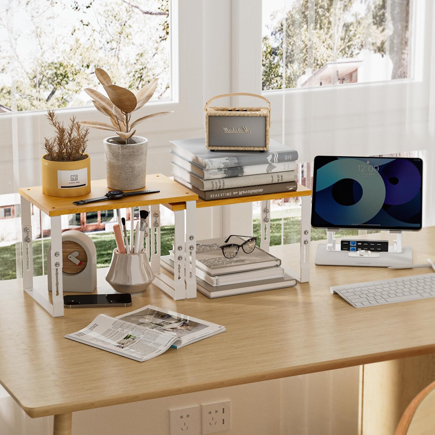 Expandable Kitchen Cabinet Organizer Shelves – Stackable Adjustable Metal and Wood Storage Racks for Countertop, Pantry, Garage Set of 2 Spice Rack – Easy Assembly, Space-Saving(2 Packs/Medium/White)