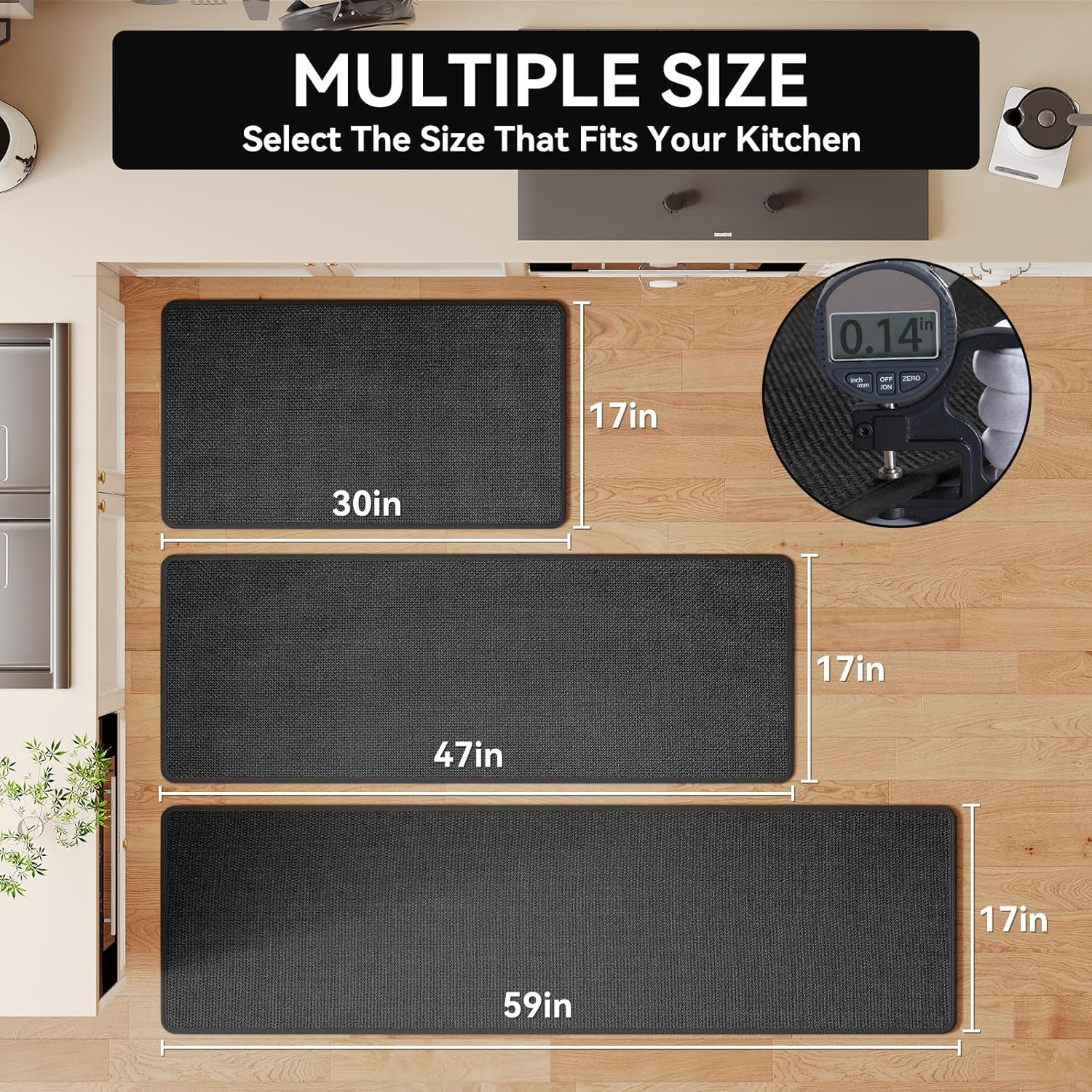 • Multi-purpose: Kitchen mats for floor widely used for home decor, in front of sink, indoor front welcome mat, living room, back doors etc.We provide two sizes to choose from: 17"x30", 17x47",17x59"