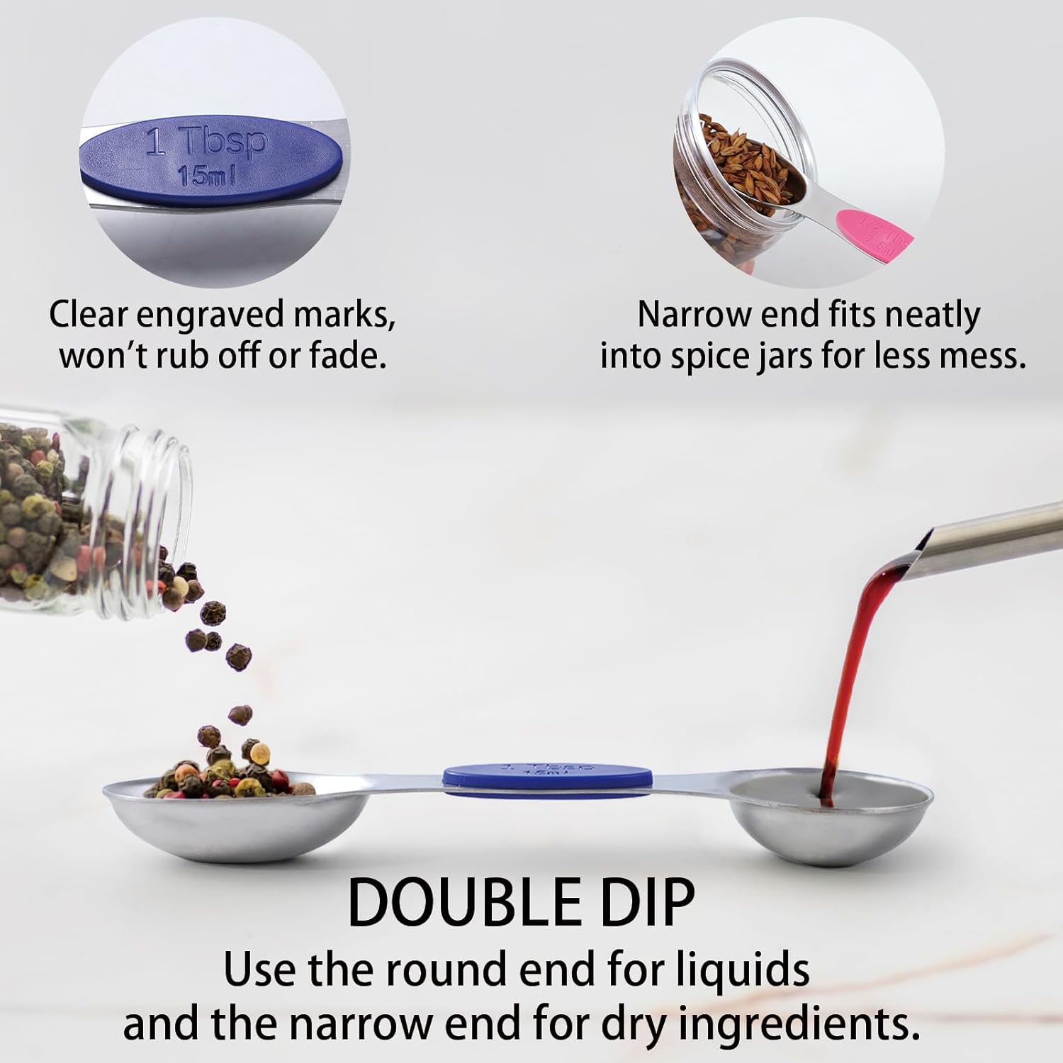 • 【Superior Quality & Health Assurance】 We never compromise on quality. The measuring cups are constructed with heavy-duty 18/8 (304) food-grade stainless steel, resistant to rust, corrosion, and odors. The spoons made from premium Food-Grade Stainless Steel + powerful magnets. The colorful silicone handles of the cups are not only non-slip and heat-resistant but also add a touch of joy to your kitchen. Rest easy knowing your ingredients are touching only safe, easy-to-clean surfaces (Dishwasher Safe).