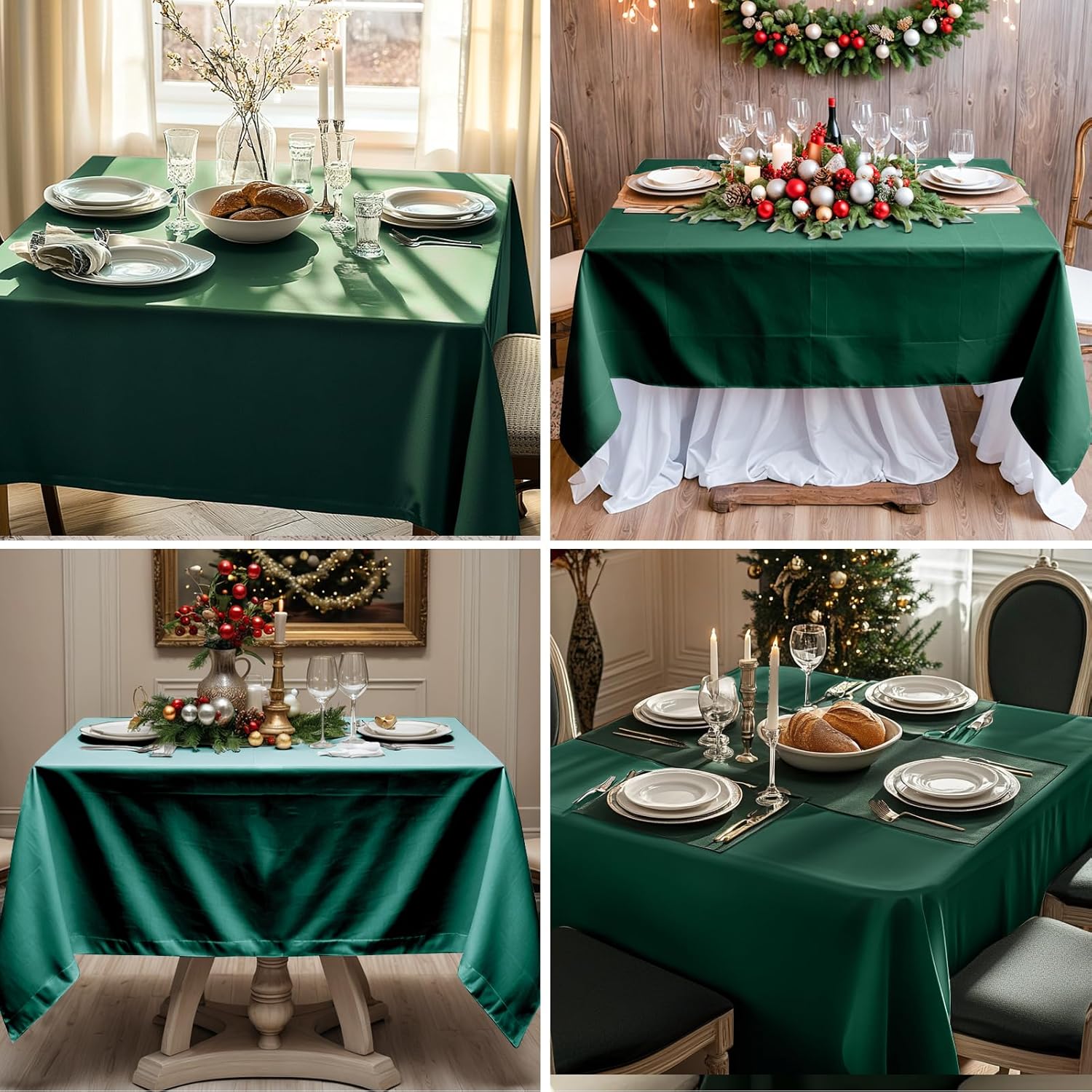 Square Tablecloth 52 x 52 Inch Dark Green Tablecloths Stain-Wrinkle Resistant Washable Polyester Table Cloths for Holiday, Buffet Parties,and Wedding 2pack