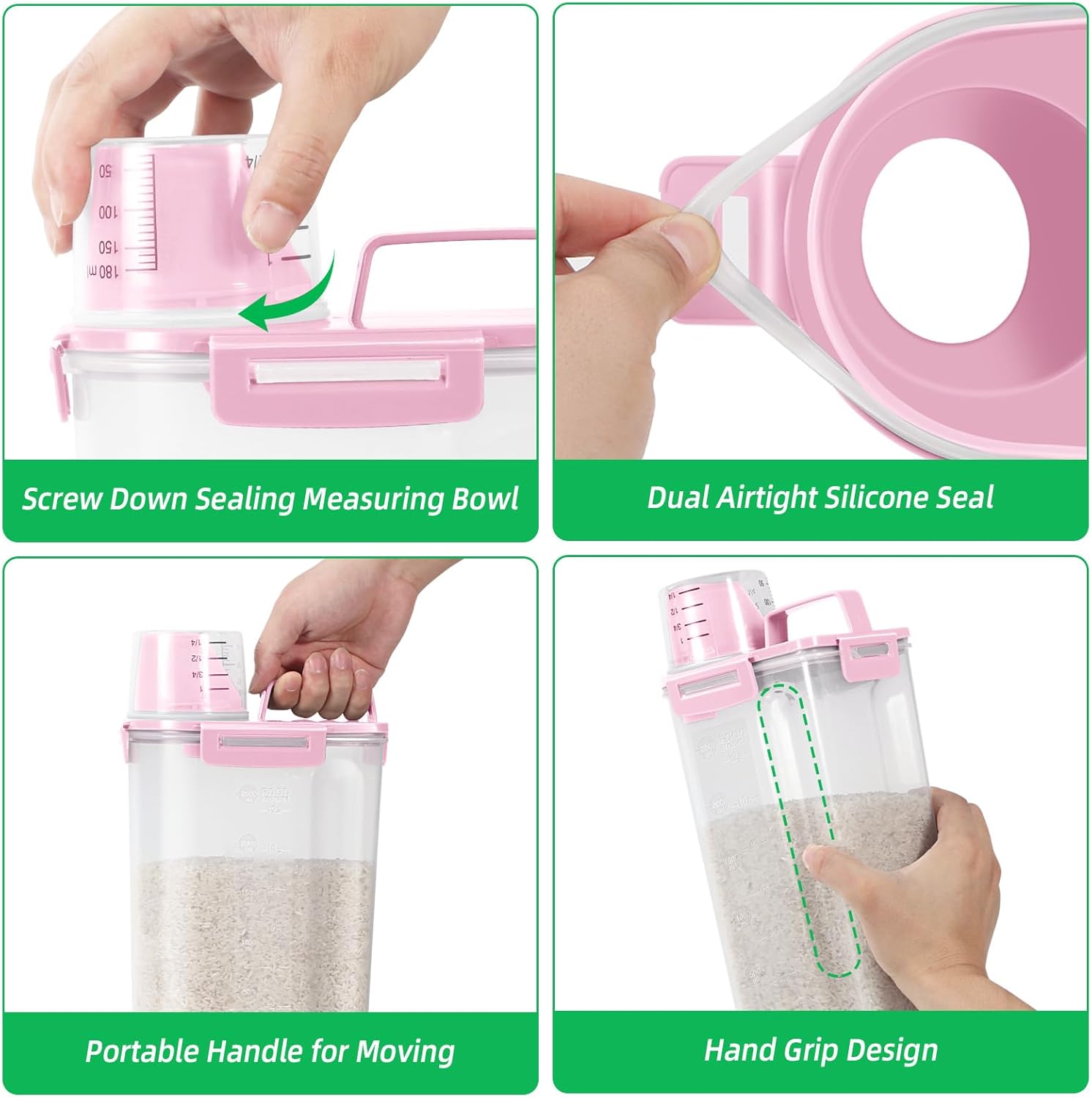 TBMax Rice Container 2 Pack 5 Lbs Cereal Container Storage, Kitchen Pantry Food Storage Holder with Cup, Small Pet Dog Cat Food Container -Pink