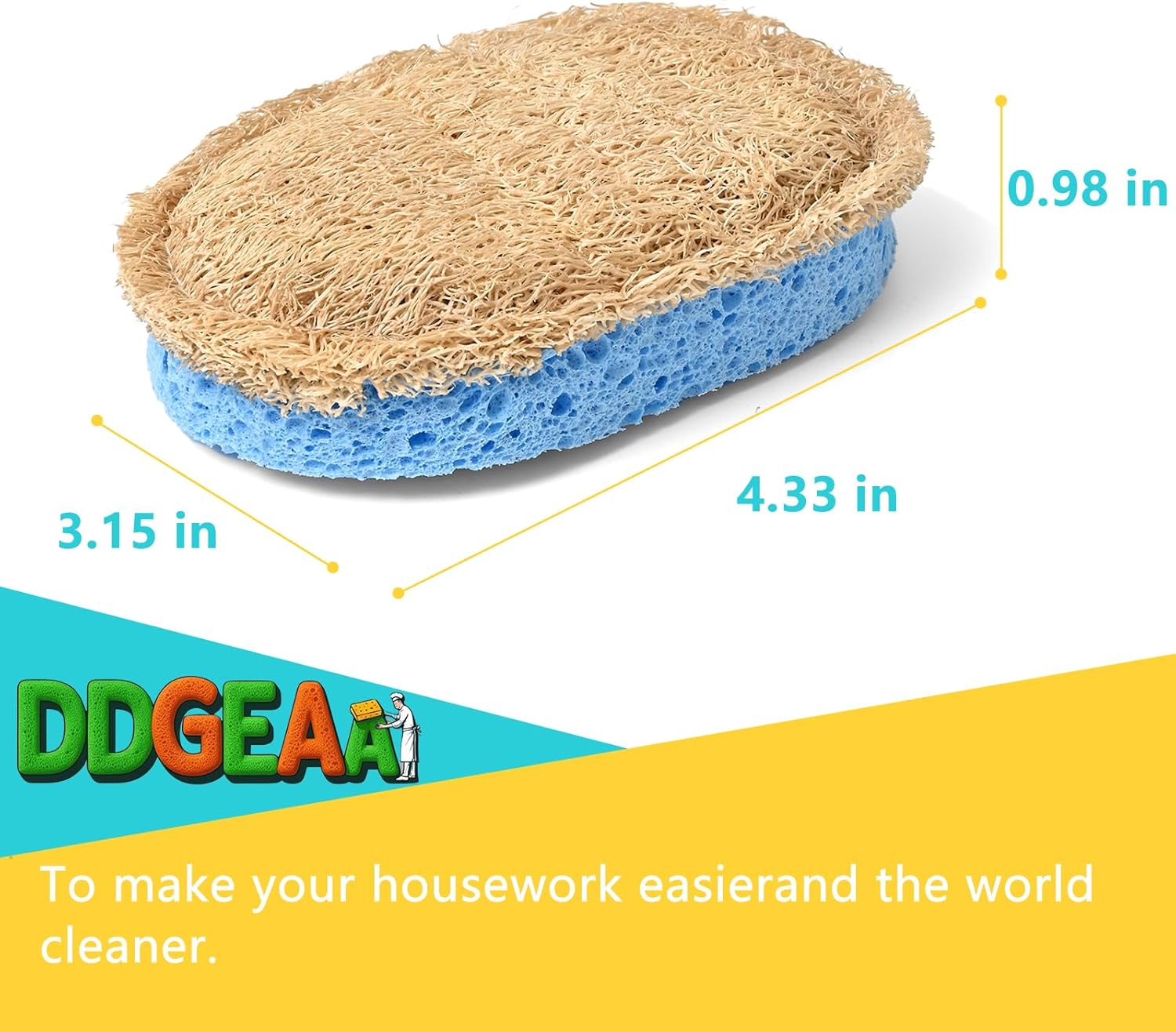 Natural Scrub Sponges Kitchen, Dual-Sided Loofah Dish Sponge - Plastic-Free, Scrubbing Power Without Scratching - 4 Pack Blue