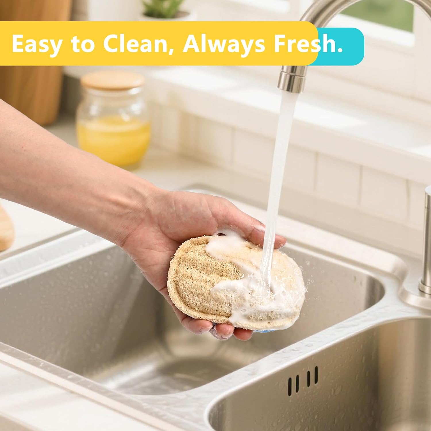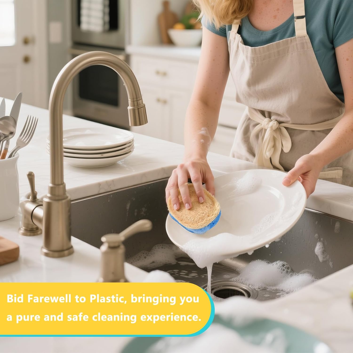 • Bid Farewell to Plastic and Enjoy a Fresh Kitchen Experience. Our scrub sponges completely abandon traditional plastic materials. They are meticulously crafted from natural wood pulp cotton and loofah, without a single drop of glue added, bringing you a pure and safe cleaning experience.