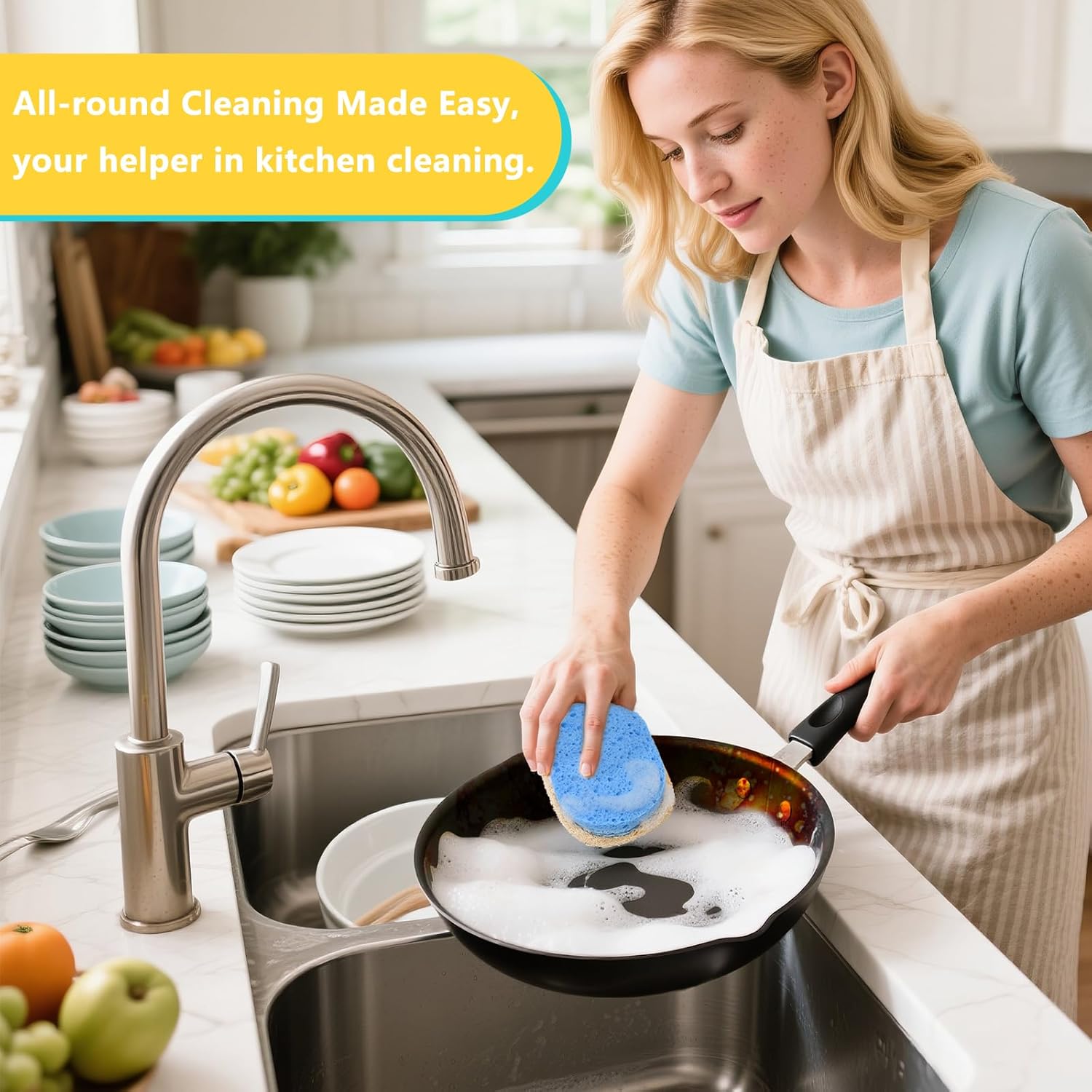 • All-round Cleaning Made Easy. Whether it's a greasy pan, various kitchen utensils and cutlery, a stained cutting board, or a dirty sink, this multi-purpose scrub sponge can handle them all with ease, becoming your trusted helper in kitchen cleaning.