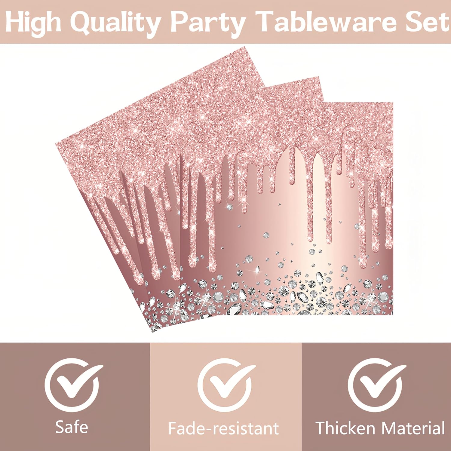 • High Quality: Engineered for real-world chaos! rose gold birthday party plate without sagging,rose gold napkins are soft and absorbent,The perfect disposable dinnerware to enjoy your party without the mess