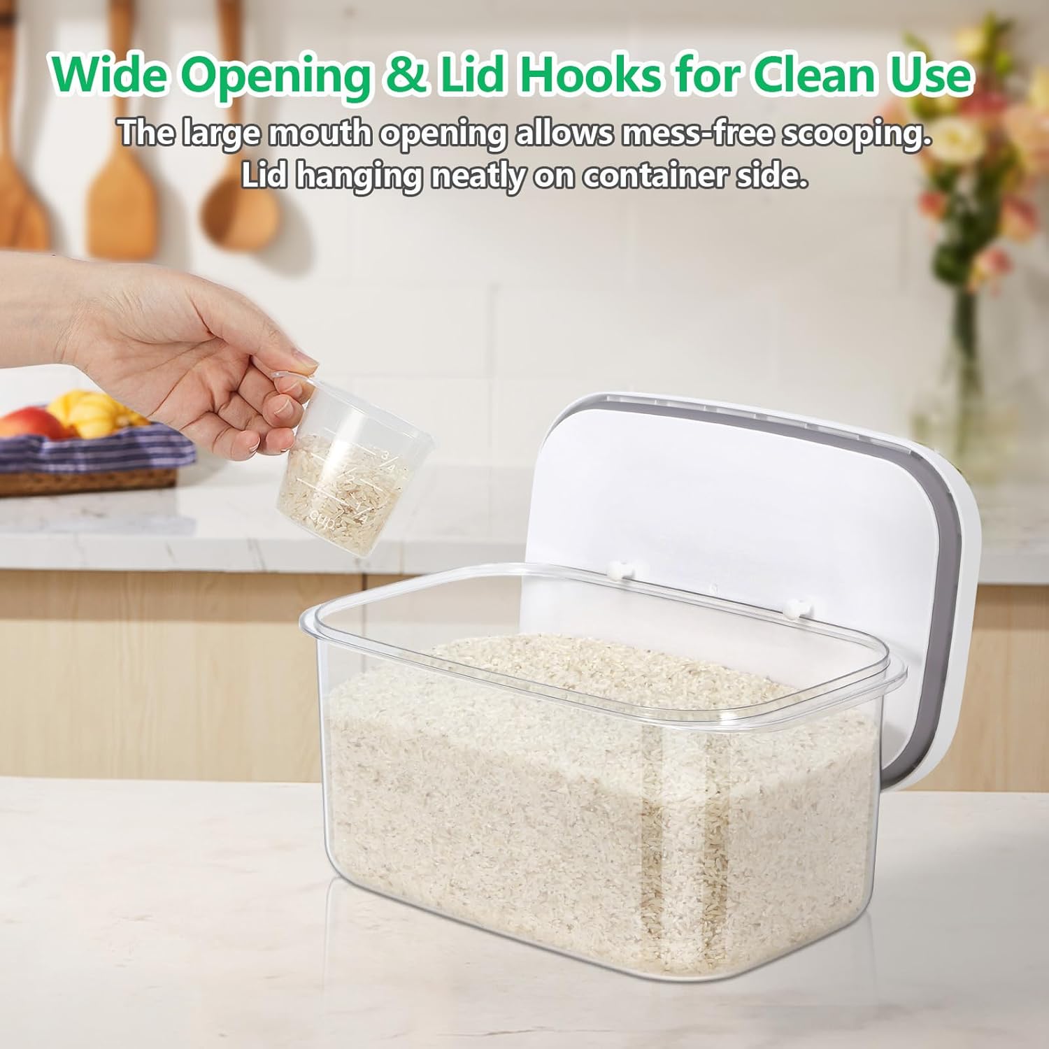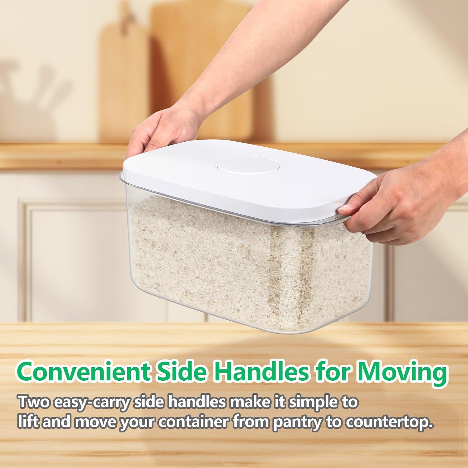 • VERSATILE RICE STORAGE CONTAINER: This rice container with airtight lid is great for storing bulk rice, flour, cereal, beans, oats, nuts, pet food and much more. Crystal clear container allow to see the food at a glance and remind you to refill. Plus, the sleek see-through design makes it look more visually appealing on your kitchen cabinet