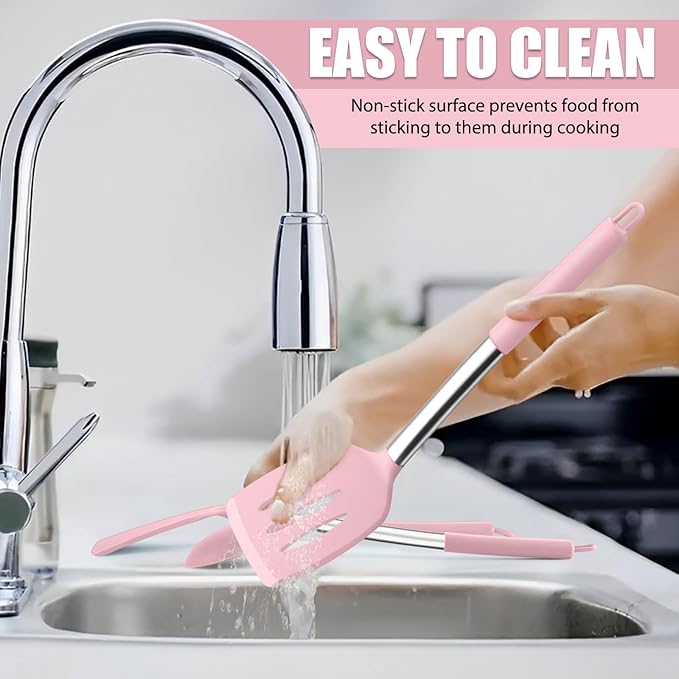 • EASY TO CLEAN & STORE - Nonstick silicone surface prevents food from sticking to them during cooking, Easy to clean by hand and dishwasher safe, Each handle has a hanging loop for easy storage, Keep your drawer space clear of clutter, Ideal gift for Christmas, Thanksgiving, housewarming
