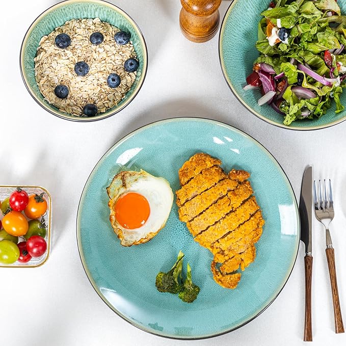 • Premium High-Fired Ceramic: Crafted with 1300℃ kiln-fired technology for superior chip & scratch resistance. Features a glossy, non-porous surface that repels stains and cleans effortlessly, ideal for busy households and holiday feasts. Note: Owing to the reactivity of glazes during the firing process, resulting in subtle variations on the surface of each tableware.