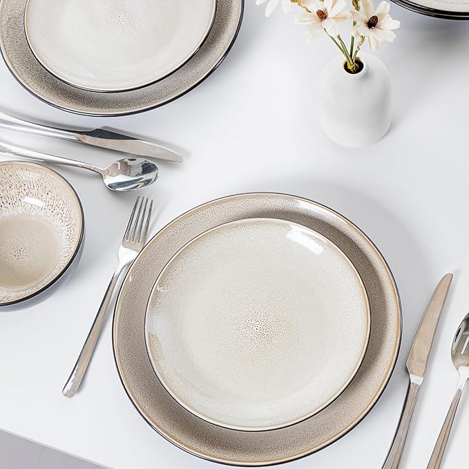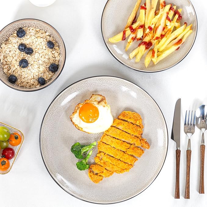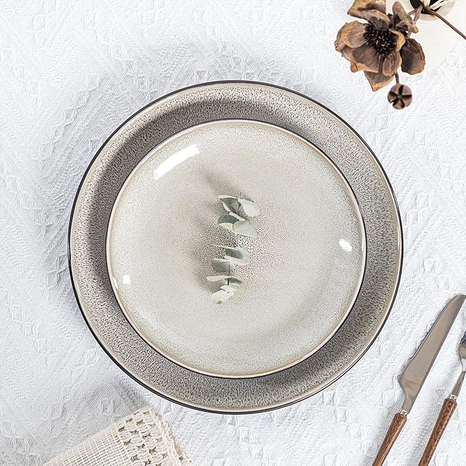 • Premium High-Fired Ceramic: Crafted with 1300℃ kiln-fired technology for superior chip & scratch resistance. Features a glossy, non-porous surface that repels stains and cleans effortlessly, ideal for busy households and holiday feasts. Note: Owing to the reactivity of glazes during the firing process, resulting in subtle variations on the surface of each tableware.