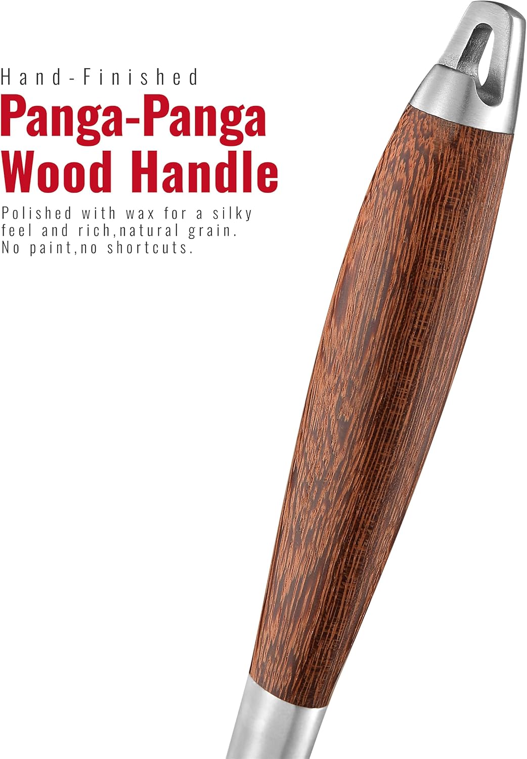 • 𝗣𝗿𝗲𝗺𝗶𝘂𝗺 𝗣𝗮𝗻𝗴𝗮-𝗣𝗮𝗻𝗴𝗮 𝗪𝗼𝗼𝗱 𝗛𝗮𝗻𝗱𝗹𝗲𝘀,𝗪𝗵𝗲𝗿𝗲 𝗚𝗿𝗮𝗶𝗻 𝗠𝗲𝗲𝘁𝘀 𝗚𝗿𝗶𝗹𝗹 - More vibrant than rosewood and more refined than ash, Panga-panga features bold, high-contrast grain and exceptional hardness. Its natural oils help resist moisture, while the smooth surface offers a secure, comfortable grip even during high-heat grilling.