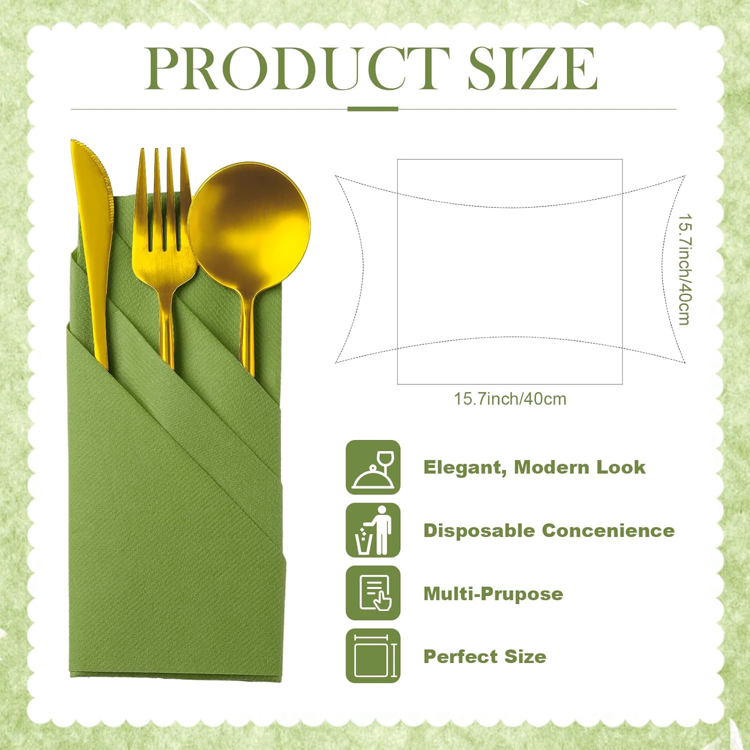 Qilery 50 Pcs Paper Linen Napkins Disposable Airlaid Paper Prefolded Dinner Napkins with Built in Flatware Pocket for Silverware Valentine Wedding Party Christmas Day (Green)