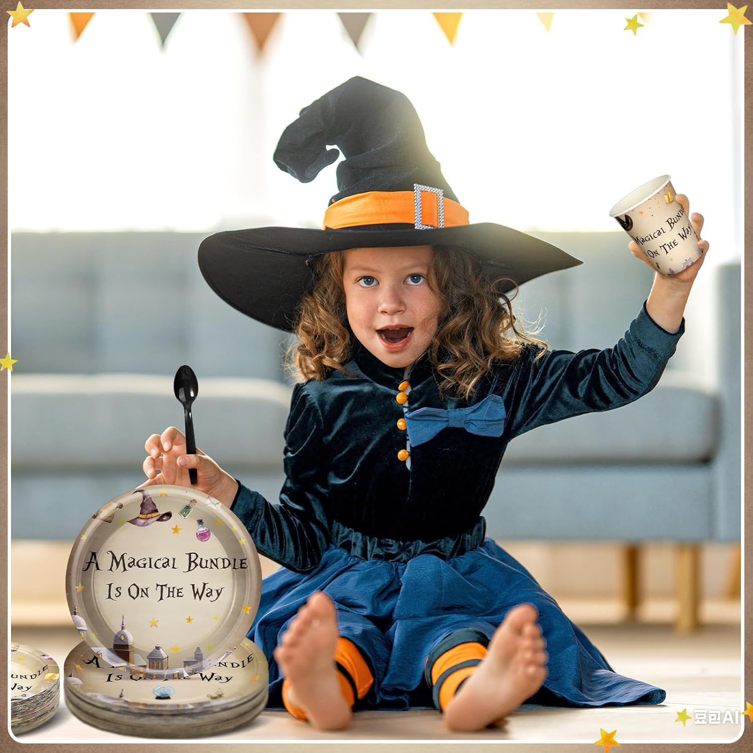 • Abundant Quantity for Baby Shower: there are 50 sets of magical wzard baby shower decorations in bulk, including 50 pieces of 9 inches paper plates, 50 pieces of 7 inches paper plates, 50 pieces of paper napkins, 50 pieces of paper cups, 50 pieces of plastic knives, 50 pieces of plastic forks, and 50 pieces of plastic spoons; With so many pieces, you can accommodate the needs of your guests and ensure a memorable baby shower experience