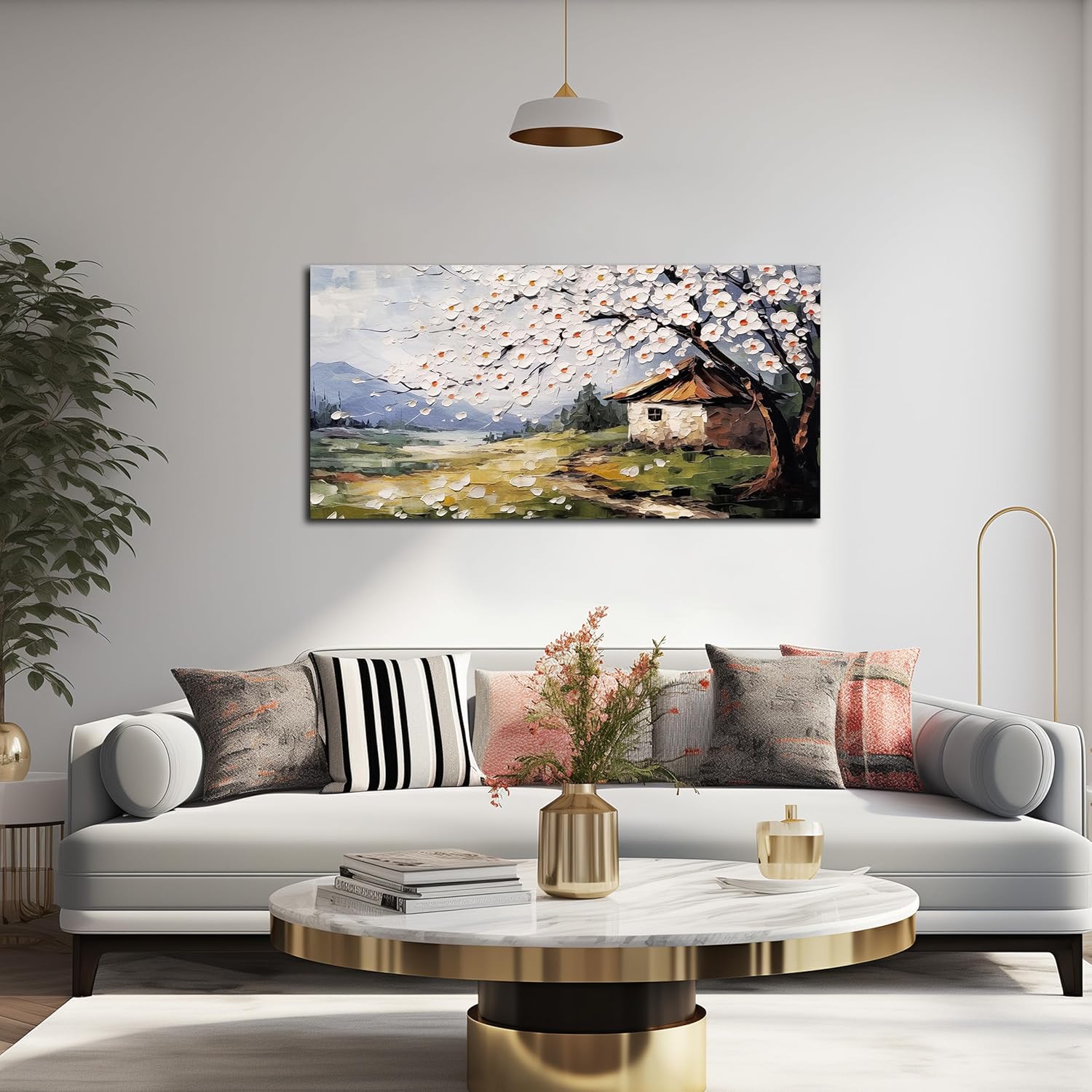 Large Canvas Wall Art for Living Room Farmhouse Decor Pictures Abstraction Landscape Wall Art Decor Prints Plum Blossom Artwork Countryside Canvas Painting Wall Decor for Bedroom with Frame 20x40 IN