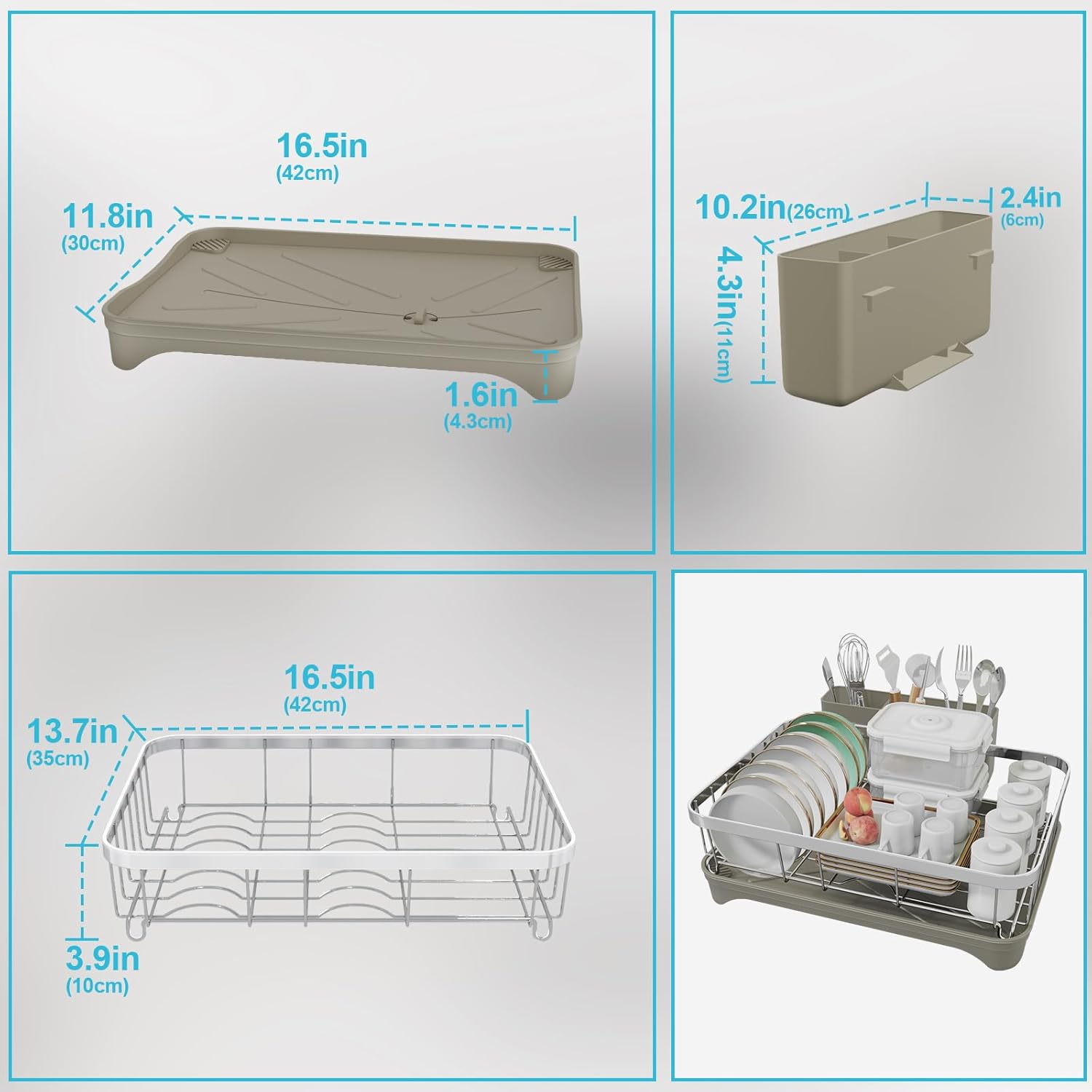• Compact Size Dish Rack :The utensil drying rack measures 16.5"L x 12"W x 5.3"H. Despite its compact dimensions, it offers ample space to hold over 10 items of various sizes, such as bowls, glass bottles, and spice jars. This makes it an ideal choice for saving countertop space.