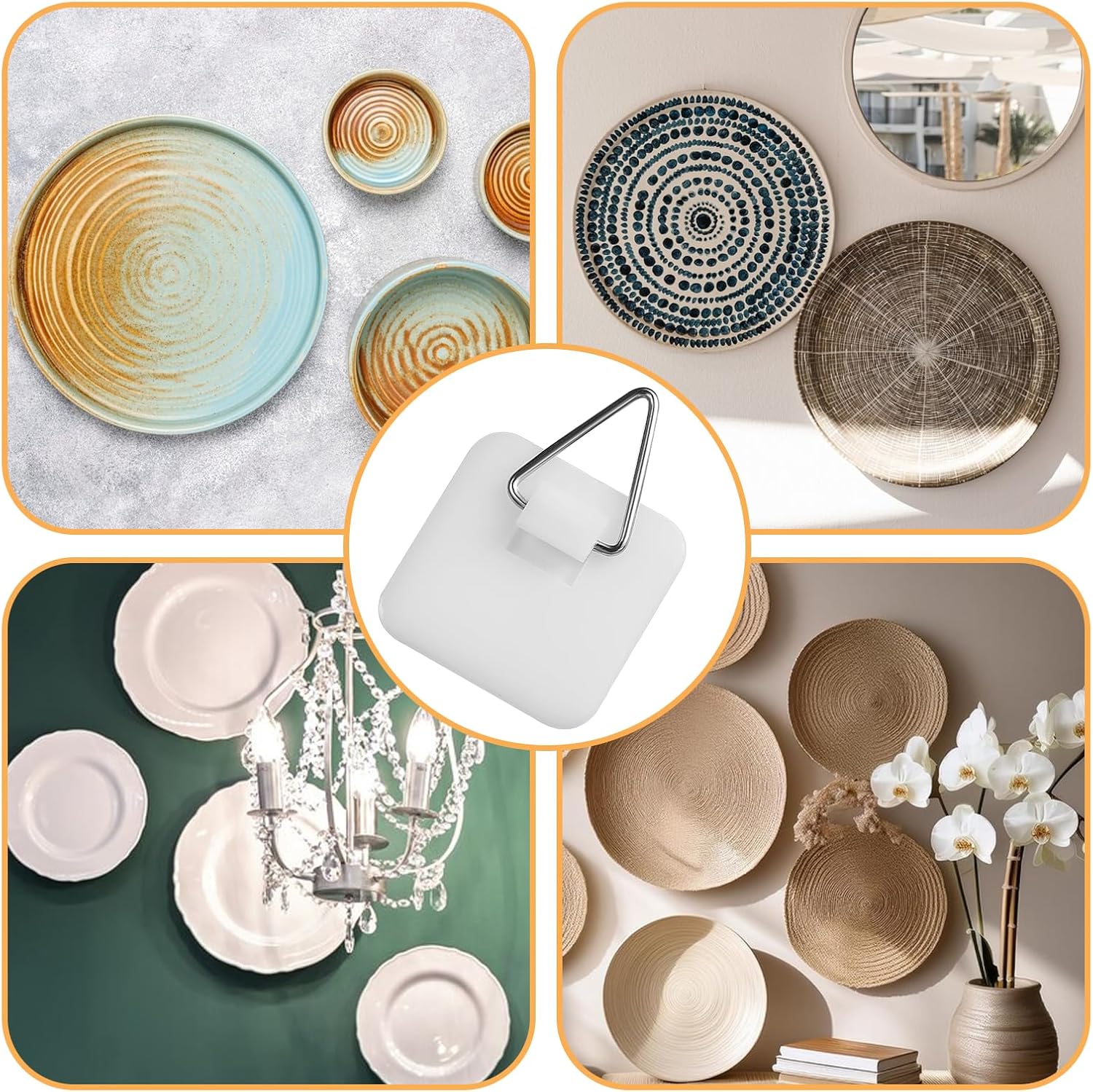• Discreet and Secure: Customize your home décor with these 20 invisible adhesive plate hangers. They ensure your plates stay flat against walls with a dependable adhesive, offering a sleek display without the bulk