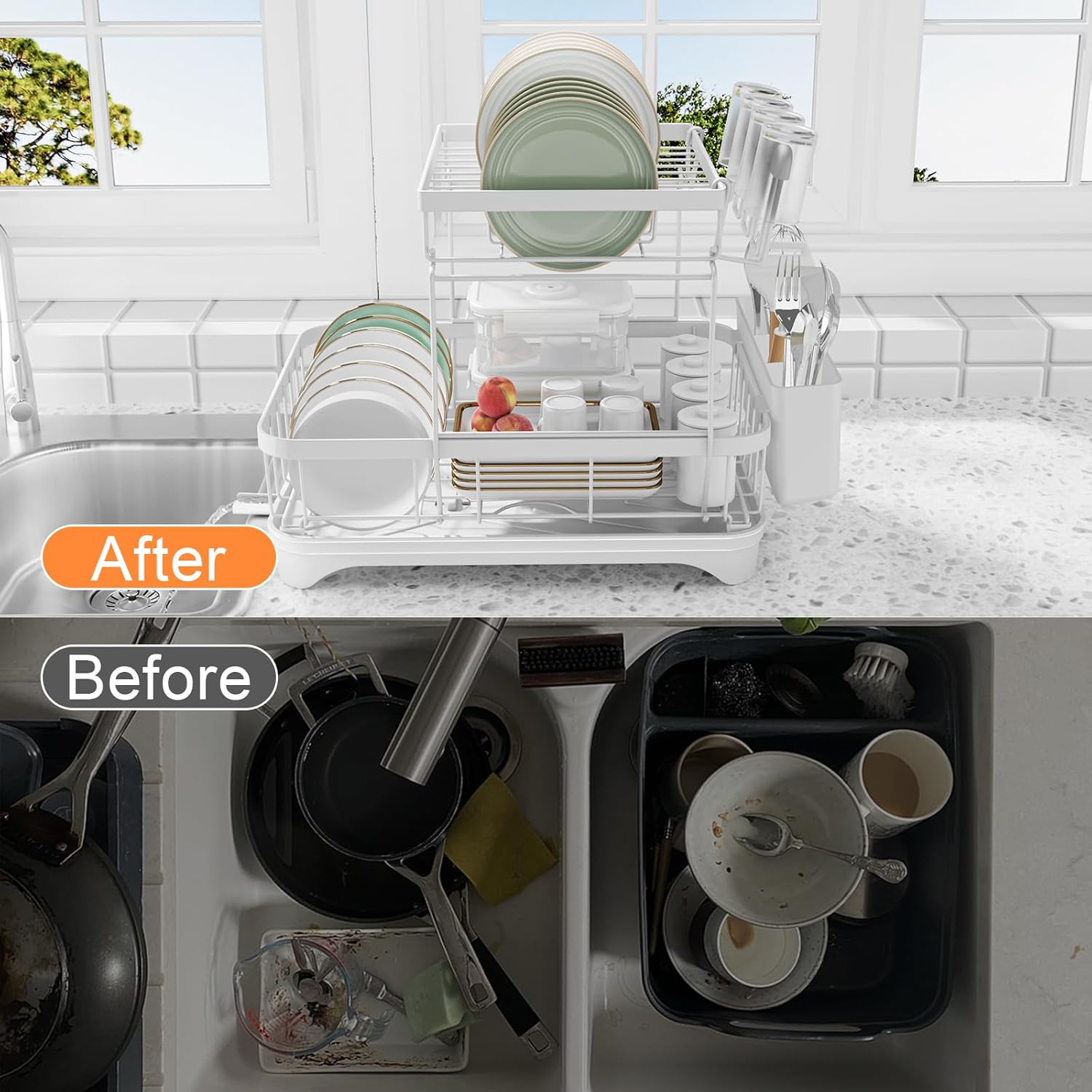 • Superior Quality and Thoughtful Design: The drying rack on the kitchen counter is made of high-strength metal and carefully polished with high-temperature paint .This ensures kitchen organizer beautiful, easy to clean, and durable . All corners have been polished to prevent scratches and damage to your plate.