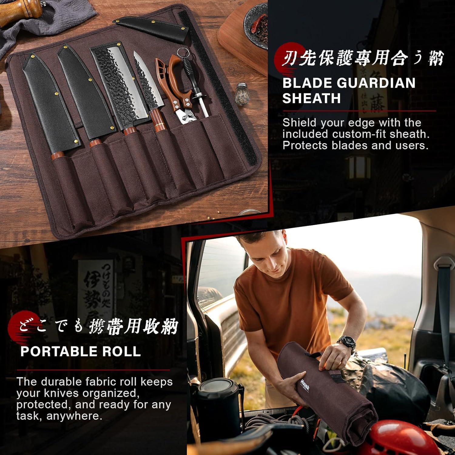 • Complete Portable Solution: All tools store neatly in the included compact roll case with individual synthetic leather sheaths protecting blades during transport. Perfect for kitchen organization or taking culinary skills outdoors to picnics and camping trips
