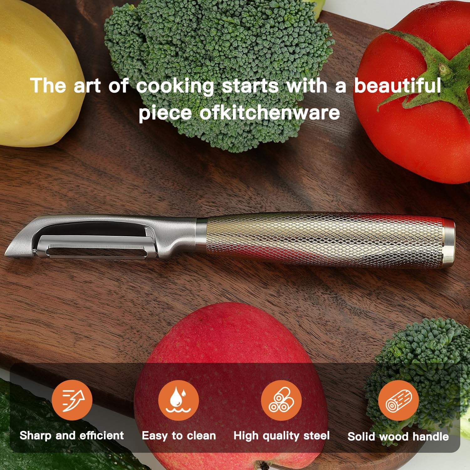 • Precision-Engineered Blade for Effortless Peeling: The blade is honed to a fine edge, allowing it to glide through tough skins and delicate produce with minimal pressure. This smooth action helps you prepare meals faster and with less food waste compared to standard peelers.