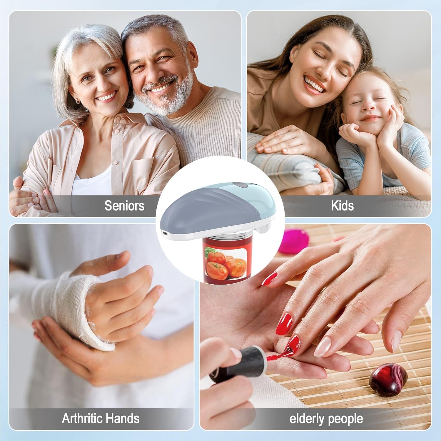 • {One-Touch Electric Can Opener} Revolutionize your kitchen routine with the top-rated electric can opener! Its advanced one-touch start function effortlessly cuts through can tops in seconds—far superior to cumbersome manual can openers. The auto-stop feature and hands-free operation make it the best can opener for seniors, individuals with arthritis, and left-handed users. No more struggling with manual can top removers, this is the ultimate kitchen essential for efficiency and ease.