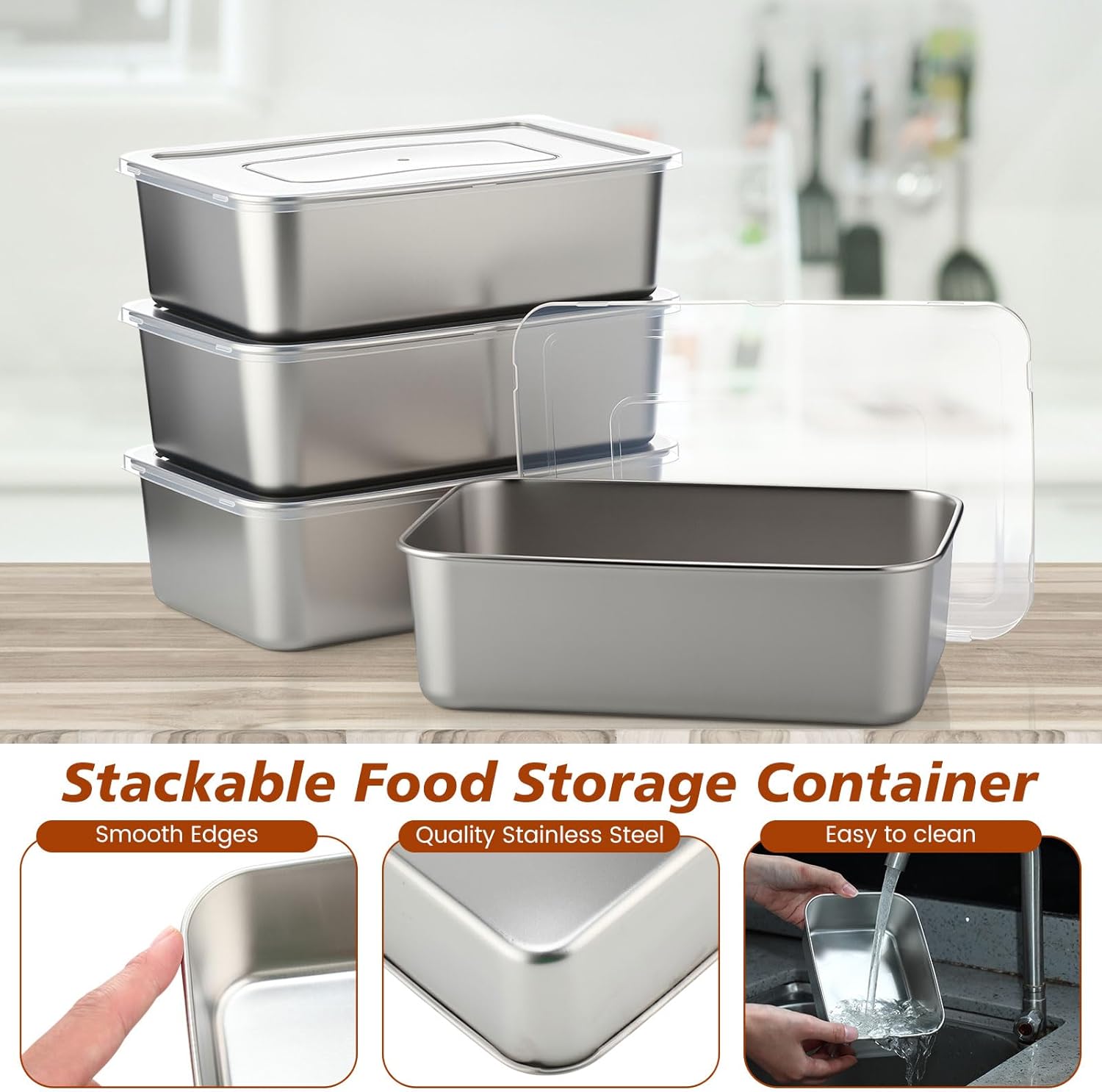 • Reliable & Lightweight Materials: made of food-grade stainless steel that is corrosion- and rust-resistant for safe everyday use. The lightweight design makes these stainless steel containers with lids easy to stack and store, while still safe for direct food contact. The lids are light but easy to open and close, stacking neatly in the fridge or freezer—ideal for meal prep and organized food storage. Dishwasher safe for quick and effortless cleaning
