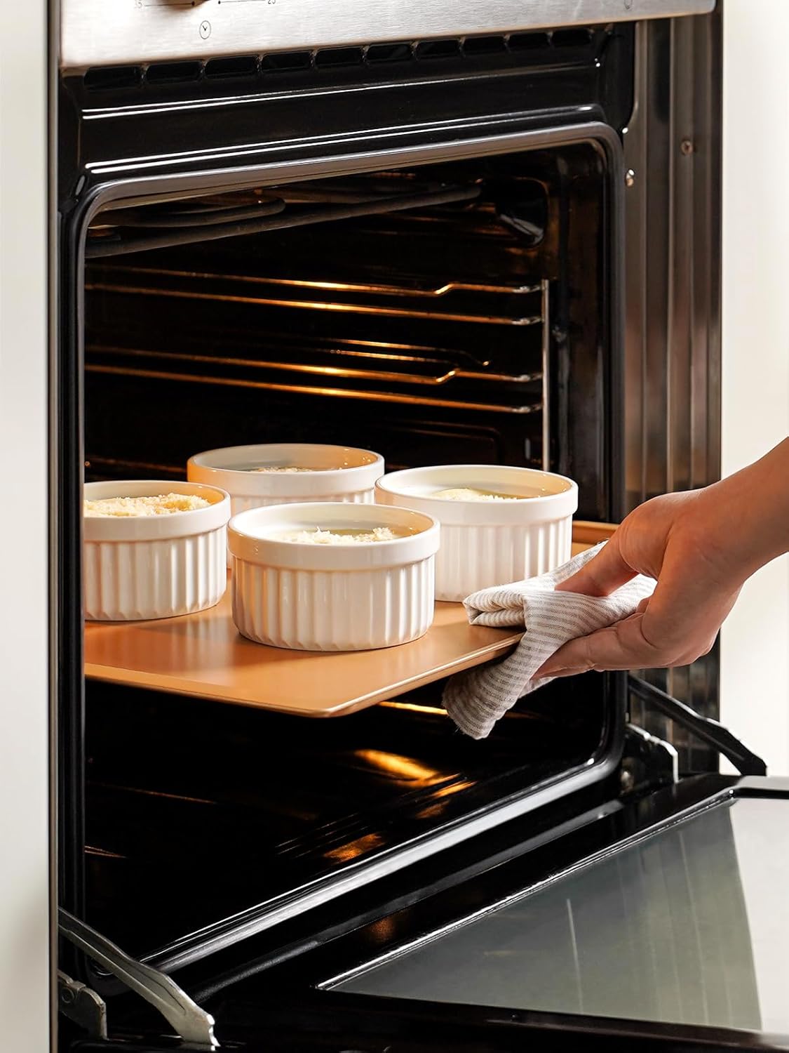 • Durable & Food-Safe Ceramic: Crafted from high-fired, lead-free stoneware, these 6 oz ramekins are built to handle oven, microwave, and dishwasher use with ease. They won’t absorb odors, hold stains, or leach anything harmful—just clean, healthy cooking without the plastic worries.