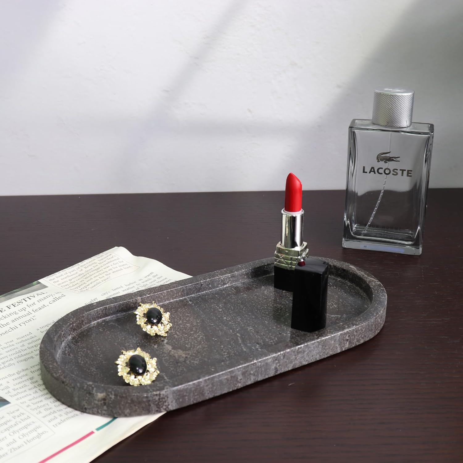 • Vanity tray 12 x 5 inches is suitable for various scenarios.It is the perfect size to place on a bathroom vanity to store hand soap, toiletries and hand towels. Because it is natural marble, the texture of each stone is different and the pattern on the tray you buy will be different from the picture