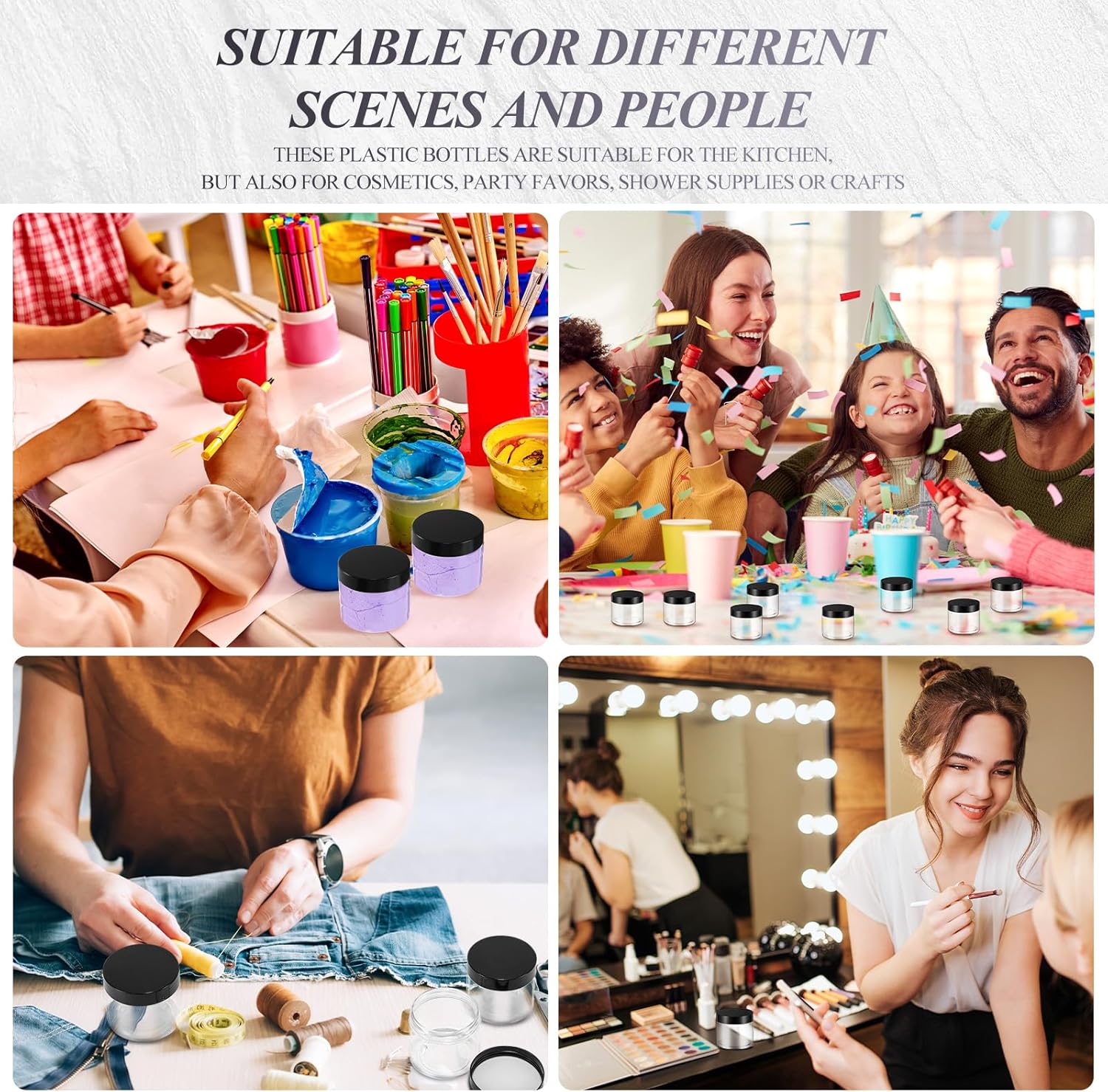 • Quality Material: the plastic jars with lids are made of quality plastic, without odd smell, does not contaminate your skincare products, stable, high temperature resistance, sealed storage and leak proof