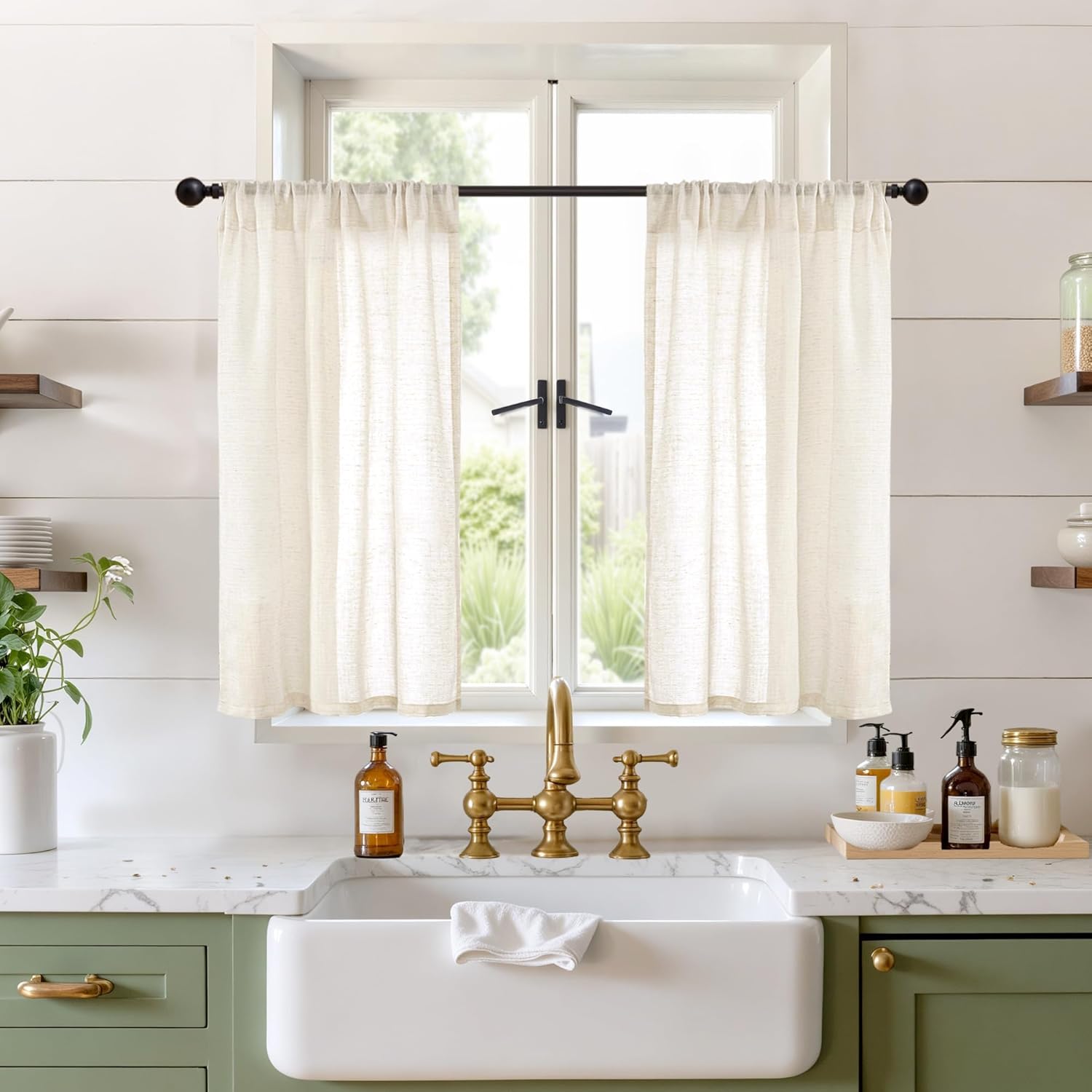 • PERFECT DECOR:This natural and practical kitchen linen curtains harmonizes seamlessly with existing home decor styles, infusing warmth and sophistication into living space. It's ideal for a wide range of small window including kitchen, cafe, living room, bedroom, farmhouse, office, laundry and more. While eco-friendly and pet-friendly makes this curtain recyclable.