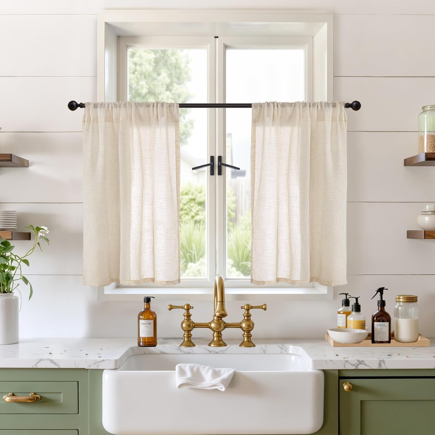 • PERFECT DECOR:This natural and practical kitchen linen curtains harmonizes seamlessly with existing home decor styles, infusing warmth and sophistication into living space. It's ideal for a wide range of small window including kitchen, cafe, living room, bedroom, farmhouse, office, laundry and more. While eco-friendly and pet-friendly makes this curtain recyclable.