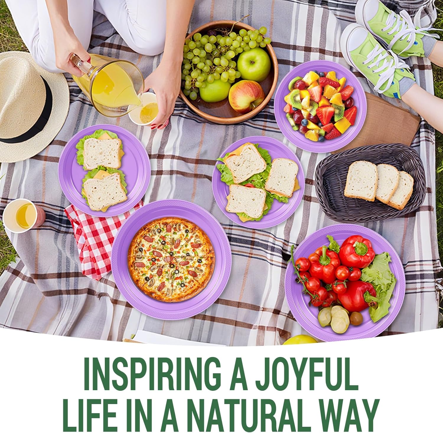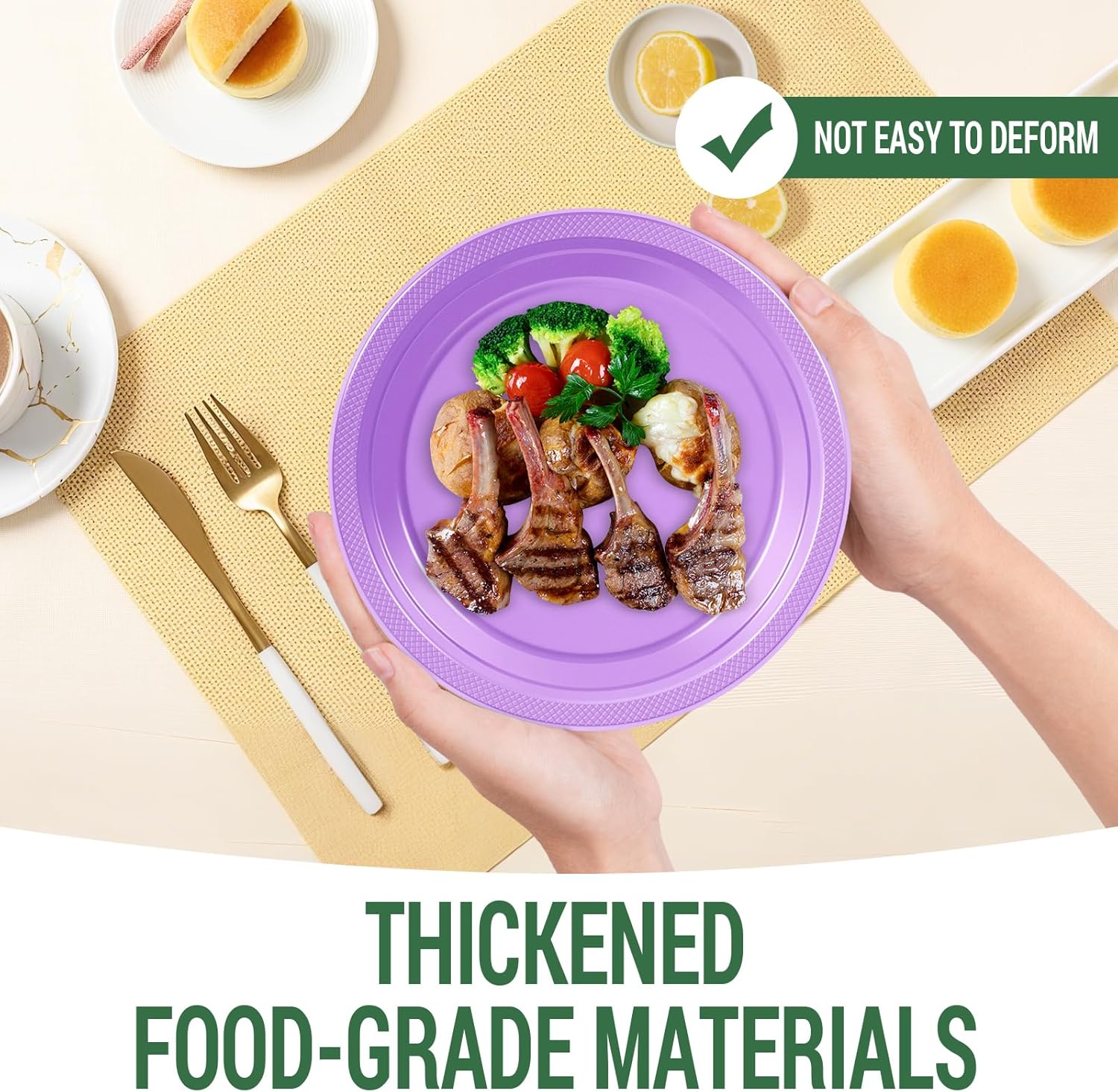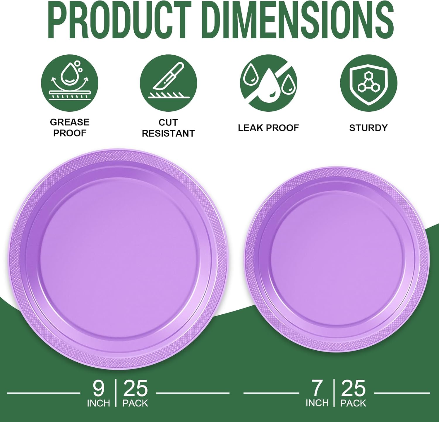 50 Lavender Plastic Plates For Party, Includes 25-9" & 25-7" Cake Dessert Plastic Dinner Plates Disposable For Party Supplies
